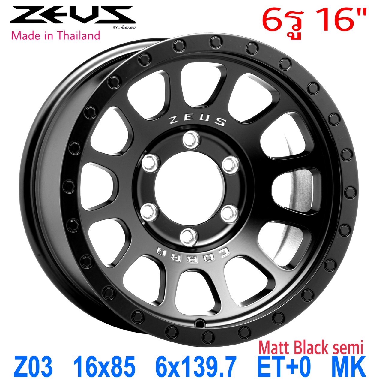 ล้อแม็ก Lenso Max3 Corba 6รู139 ดำด้าน ET0 กว้าง8.5 ขอบ16นิ้ว