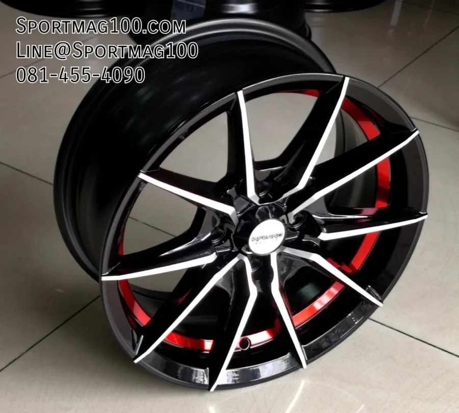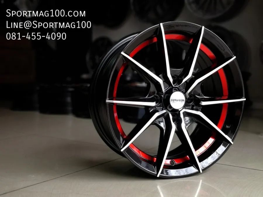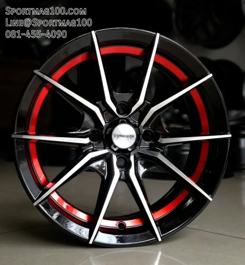 อัลบั้ม้ล้อแม็กใหม่ Inferno 949 4รู100 ET30 ดำหน้าเงาคัตแดง 6-14นิ้ว