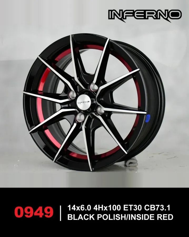 ้ล้อแม็กใหม่ Inferno 949 4รู100 ET30 ดำหน้าเงาคัตแดง 6-14นิ้ว