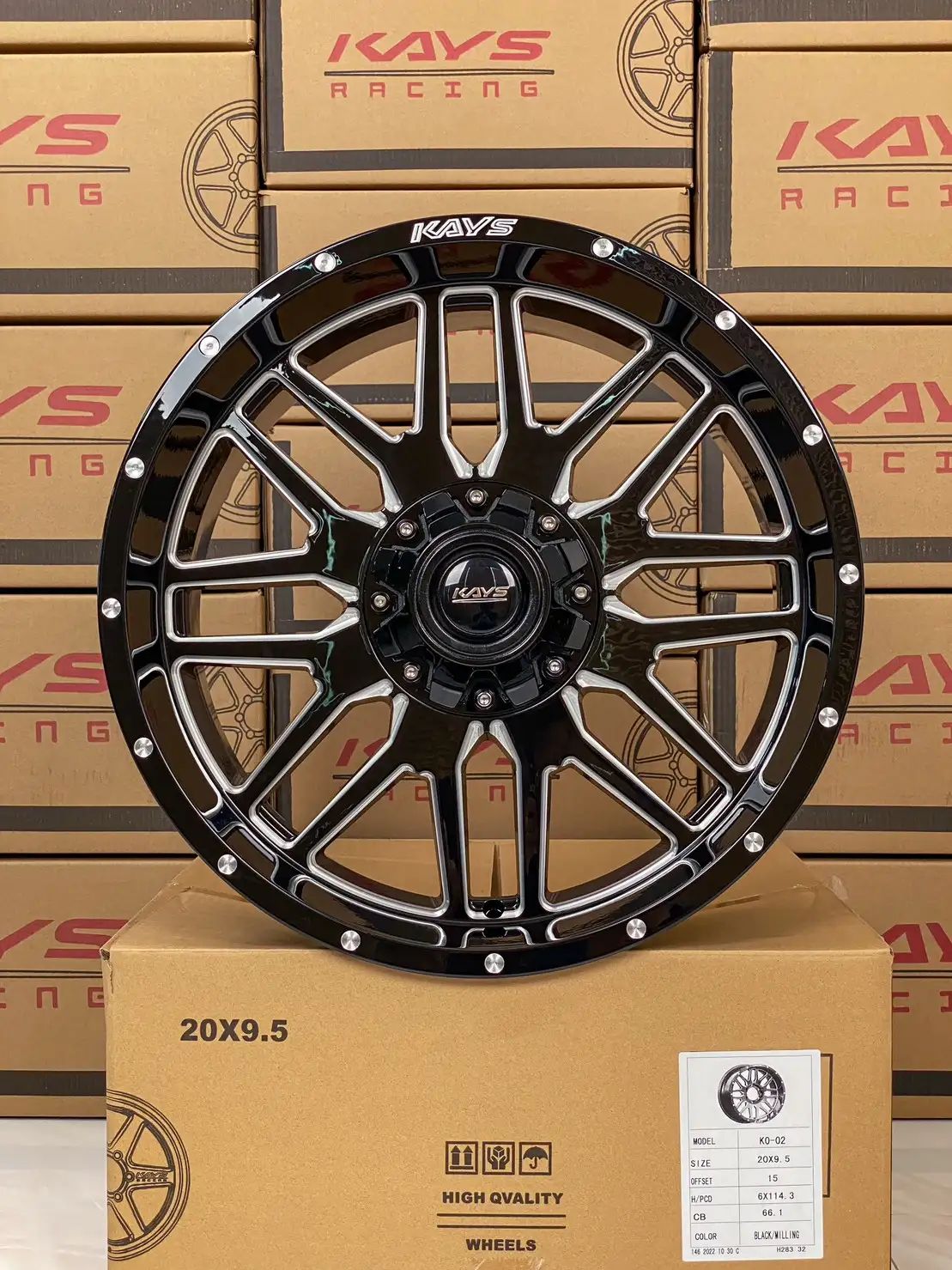 ล้อแม็กใหม่ Jstar Ko02 6รู114 ET15 ดำมิลลิ่งก้าน 9.5-20นิ้ว