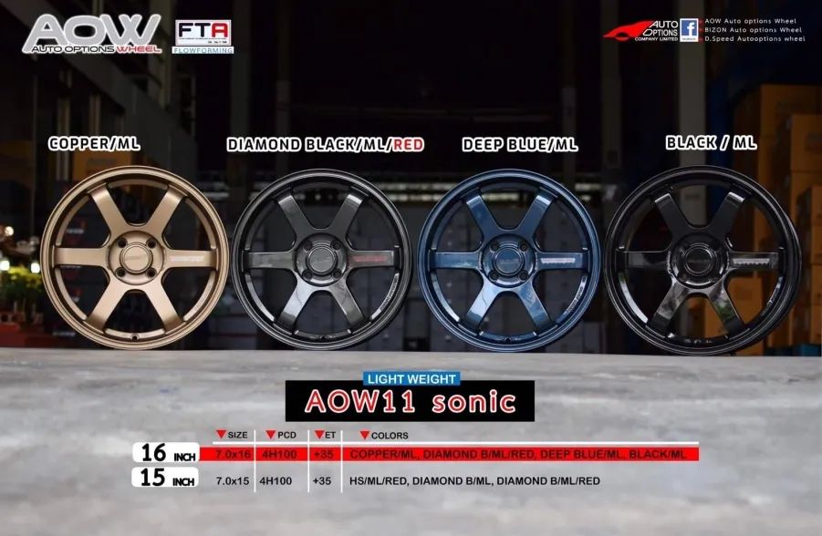 ล้อแม็กใหม่เบา AOW TE37 Sonic 4รู100 น้ำเงิน 7-16นิ้ว