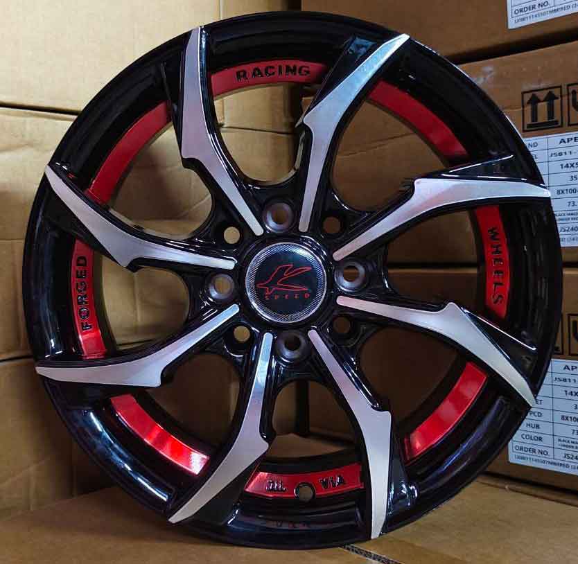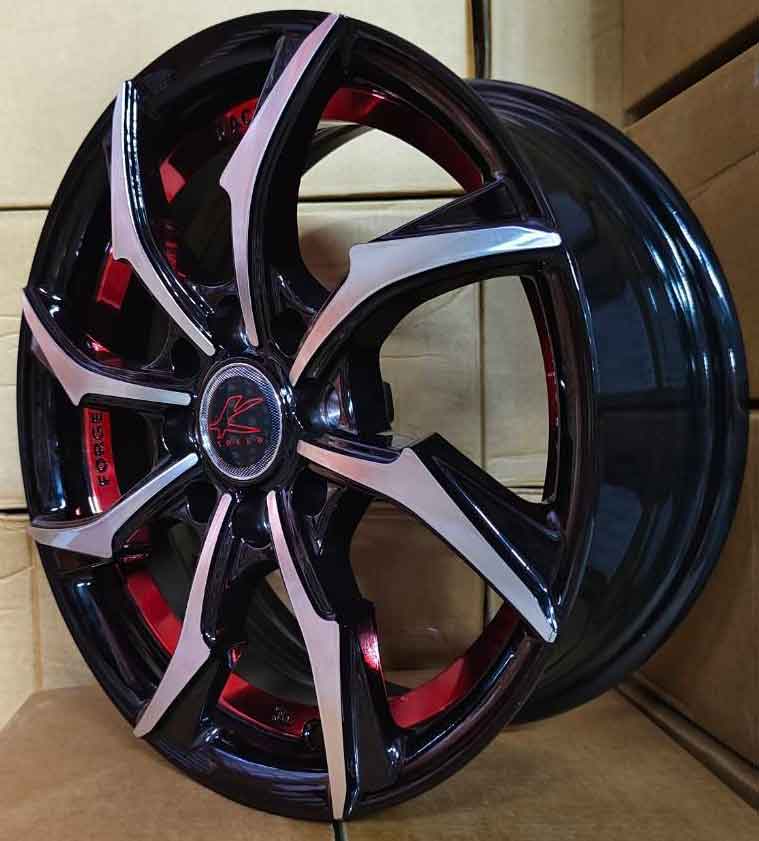 ล้อแม็กใหม่ Kspeed Twister 4รู100/110 ET35 ดำหน้าเงาคัตแดง 5.5-14นิ้ว