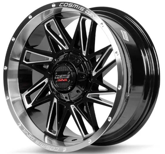 แม็กซ์ใหม่ Cosmis Devil Spin82 6รู130/139 ET0 ดำขอบเงามิลลิ่ง 9-20นิ้ว