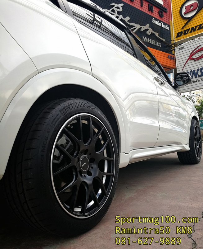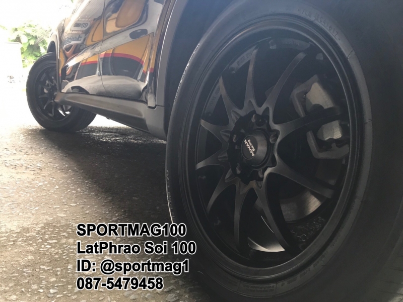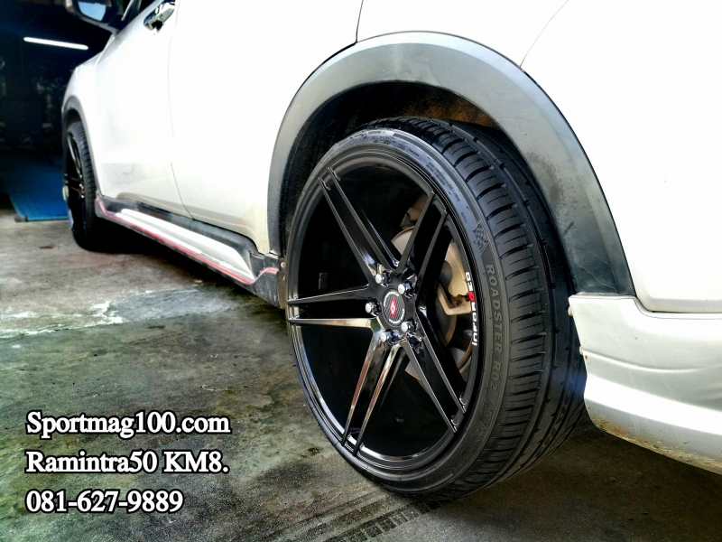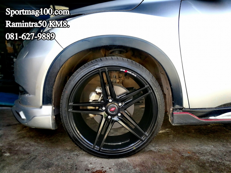 ล้อ: YACHIYODA GTC01 สีแบล็คโคม สเปค 18x8นิ้ว OFFSET35 จับคู่กับยาง: YOKOHAMA ADVAN DB V552 ขนาด 235/50R18 สวยพอดีซุ้ม ล้อสีแบล็คโคมสวยเด่นชัดเข้ากับสีรถ