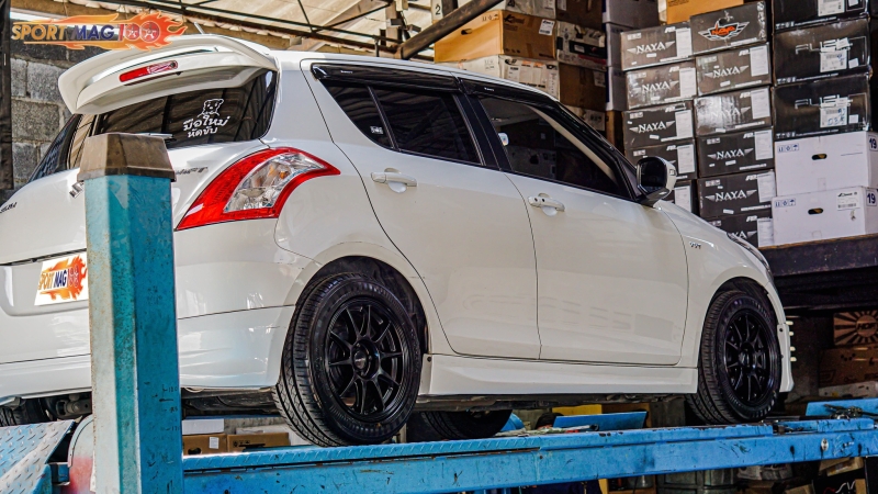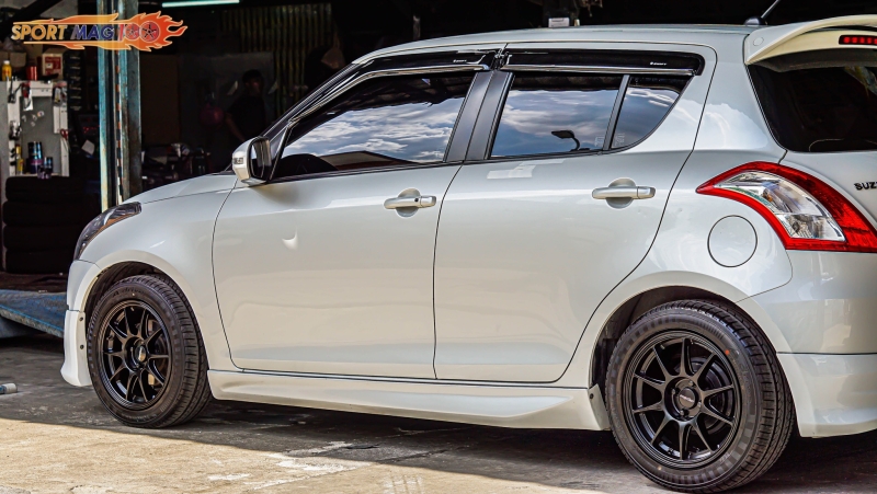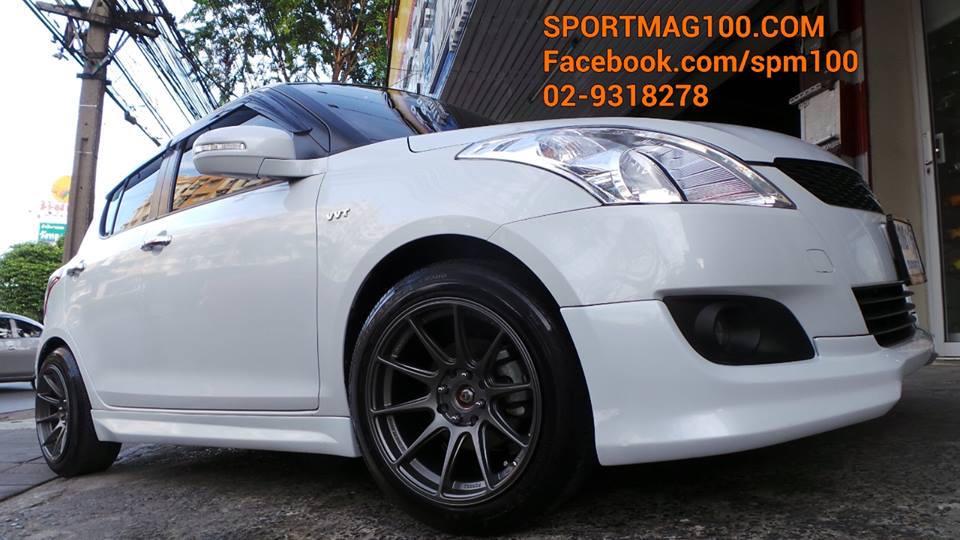 สเปคGP ล้อเป็นของค่ายAvanti มาตรฐานEnkei สเปค7-17นิ้ว ET48 ใส่กับSwift ก็ลงตัวแบบนี้