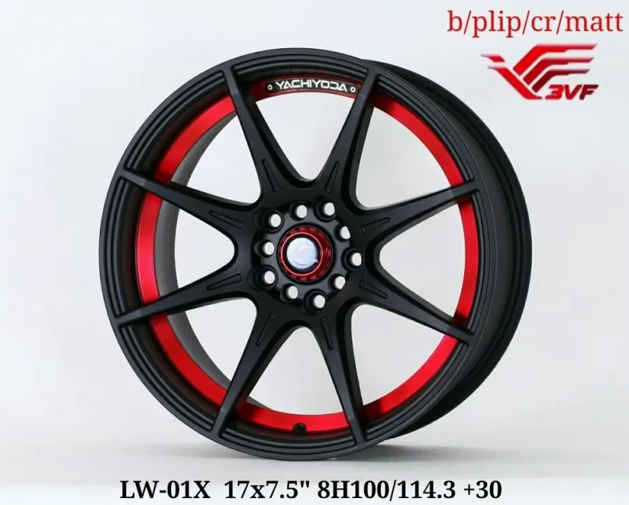 ล้อแม็กใหม่เบา Yachiyoda Lw01X 5รู100/114 ET30 ดำด้านแดง 7.5-17นิ้ว