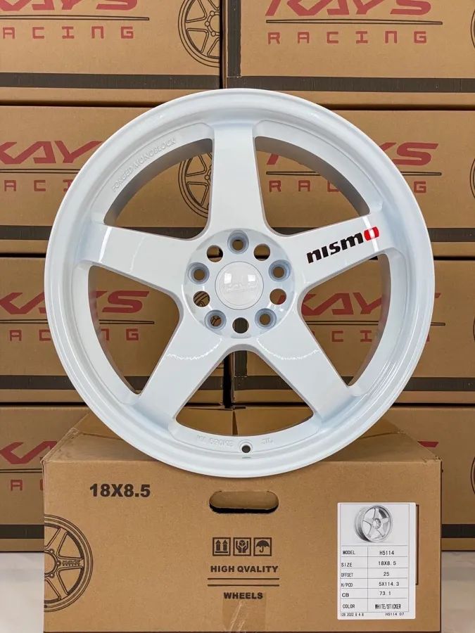 ล้อแม็กใหม่ลาย NISMO GT5 5รู114 ET25 สีขาว 8.5-18นิ้ว