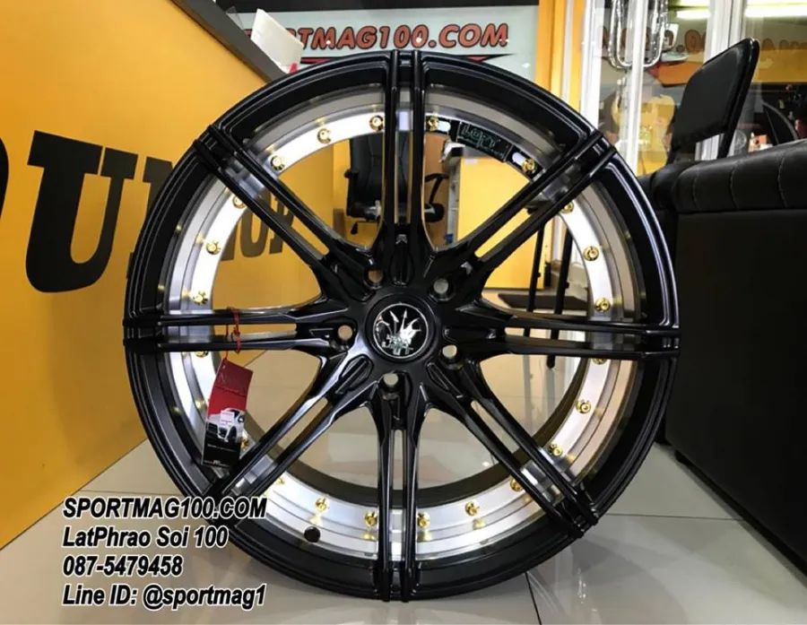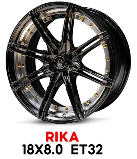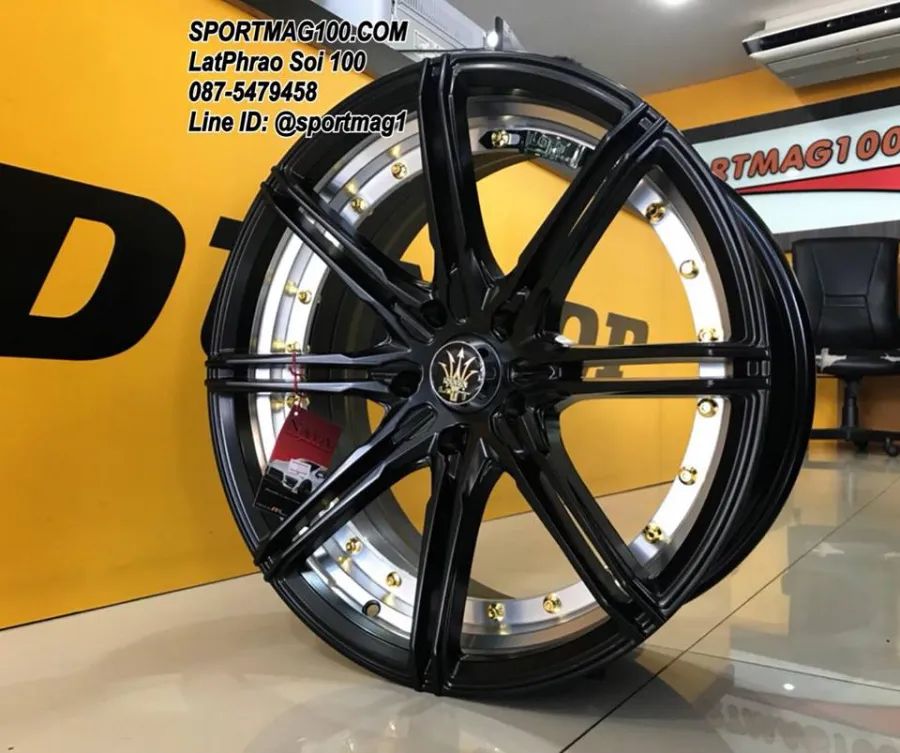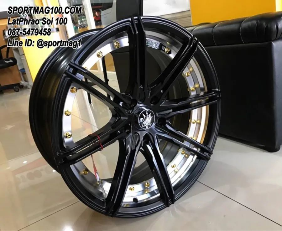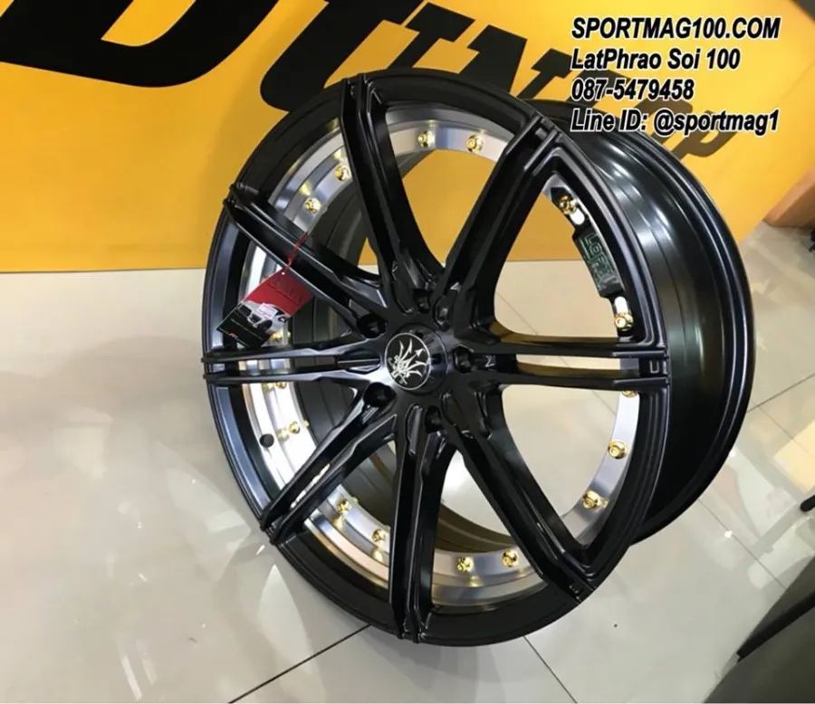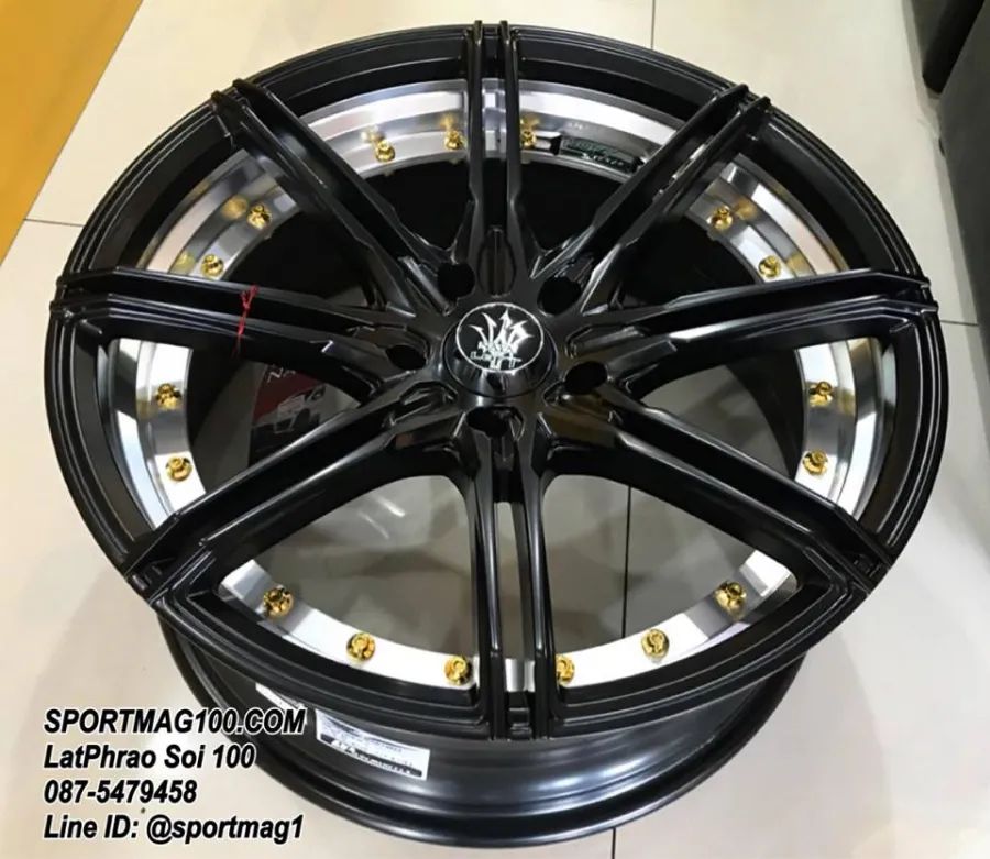 ล้อแม็ก NAYA RIKA 5รู100 ET32 ดำด้านอันเดอร์คัตหมุดทอง กว้าง8 ขอบ18นื้ว