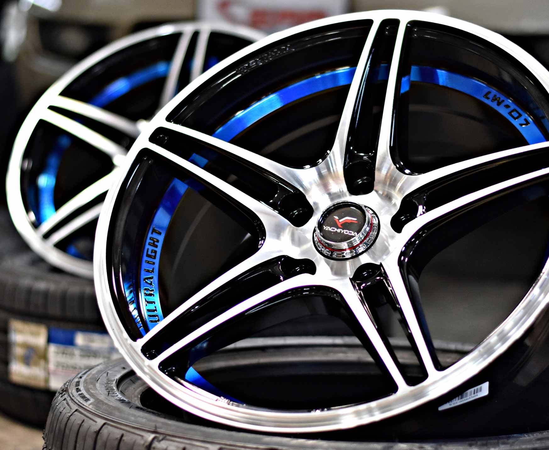 ล้อแม็กซ์ใหม่ #Yachiyoda #LW07 สีดำหน้าเงาคัตน้ำเงิน