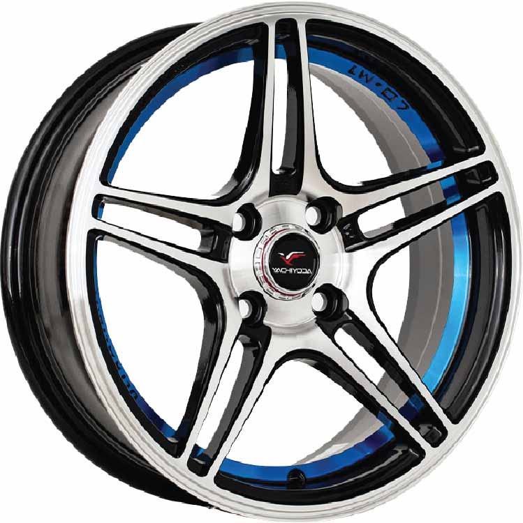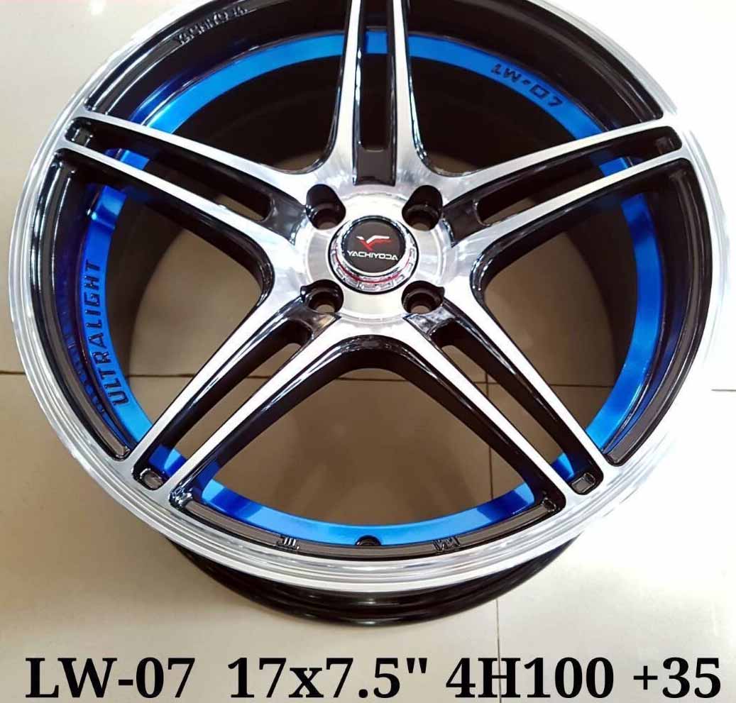 อัลบั้มล้อแม็ก Yachiyoda LW07 4รู100 ET35 ดำหน้าเงาคัตน้ำเงิน กว้าง7.5 ขอบ17นิ้ว