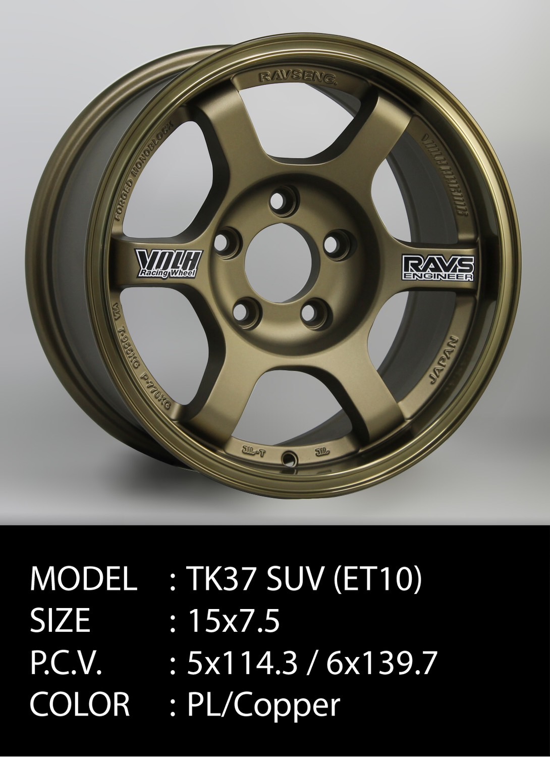 อัลบั้มล้อแม็ก TE37 ขอบ15นิ้ว 5รู114 ET10 ทองไหม้ กว้าง 7.5นิ้ว