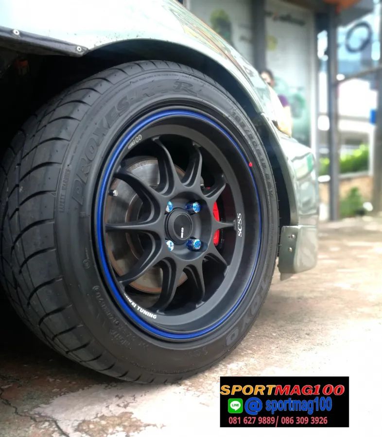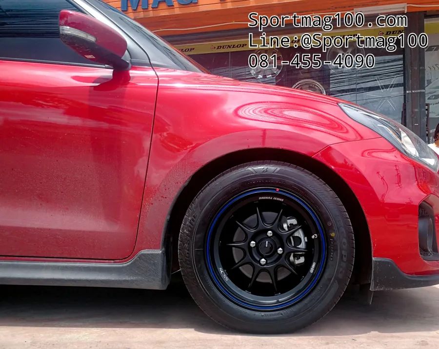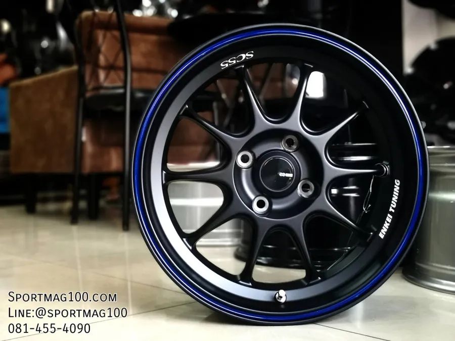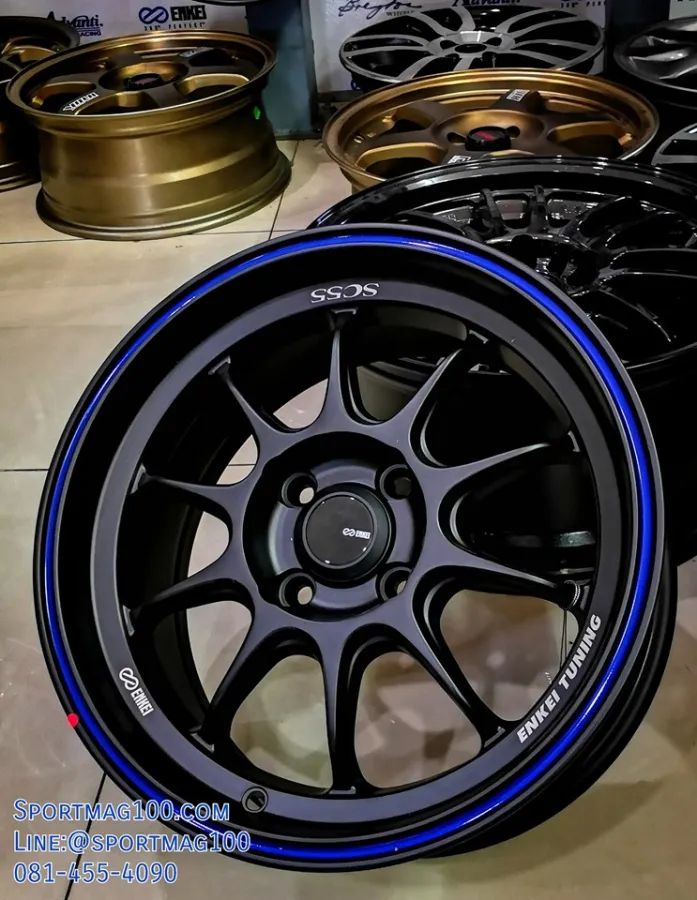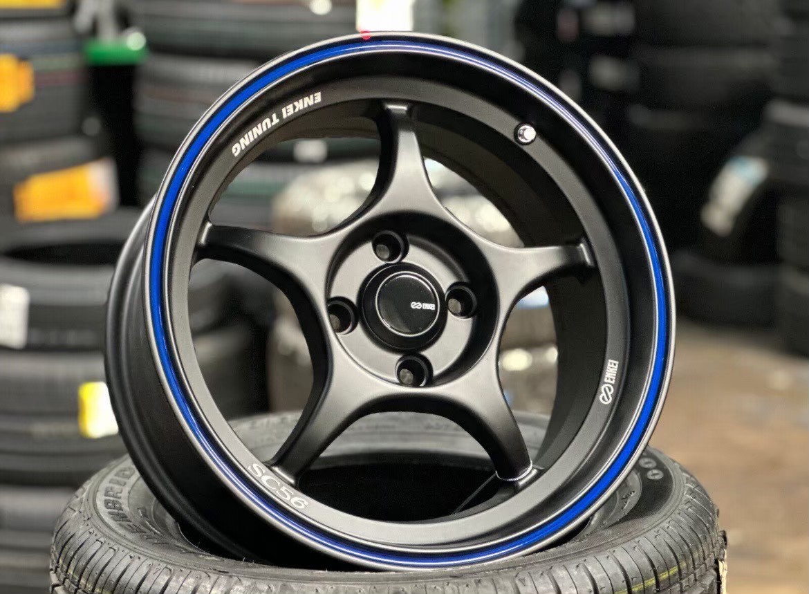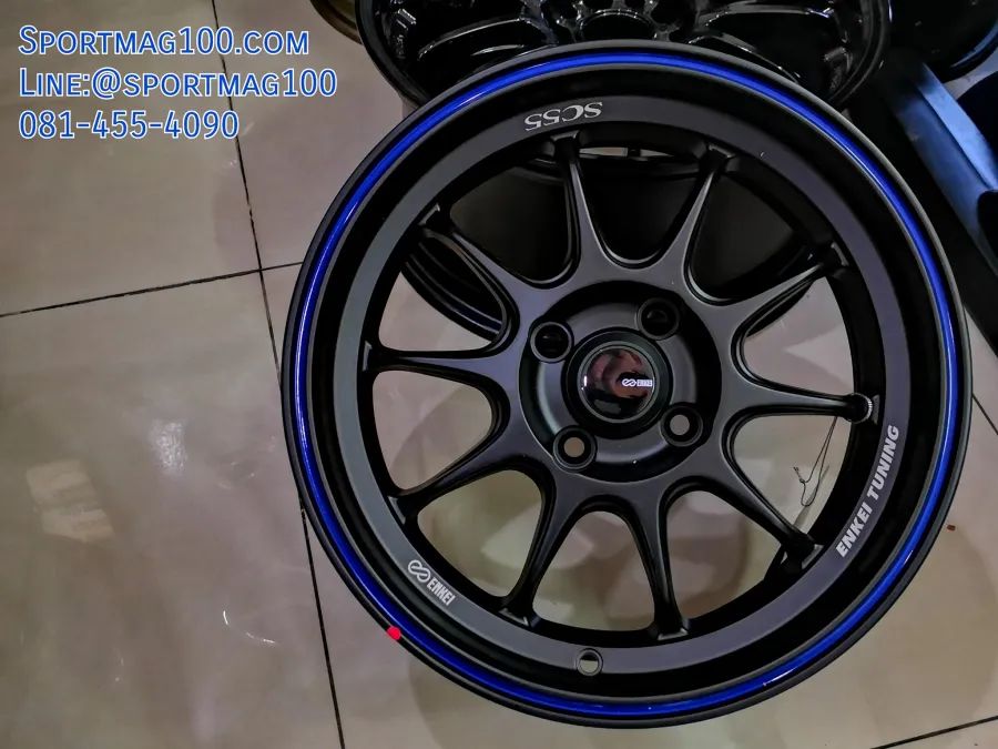 อัลบั้มล้อแม็ก Enkei ขอบ15นิ้ว SC55 4รู100 ET28 ดำเส้นน้ำเงิน กว้าง 7นิ้ว