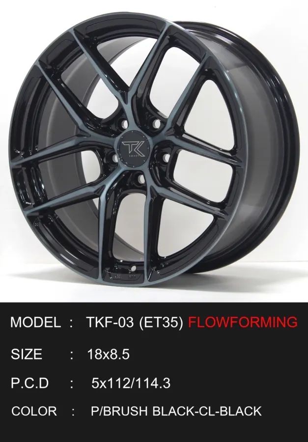 ล้อแม็กใหม่ FlowForming TKF-03 5รู112/114 ET35 ดำหน้าเงาแลคดำ 8.5-18นิ้ว