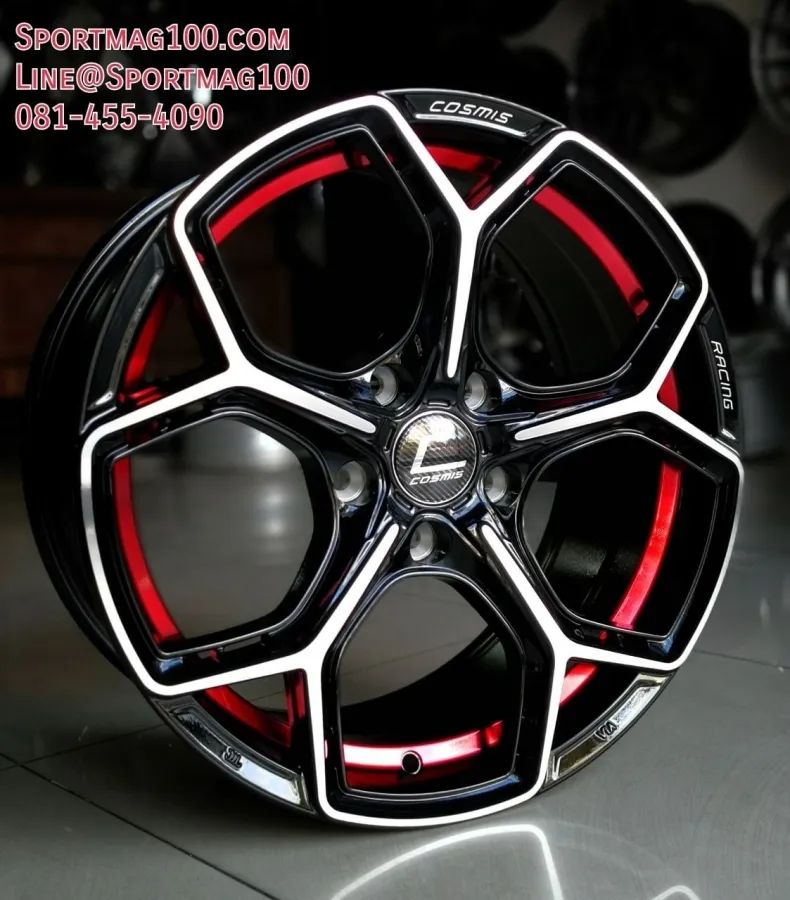 อัลบั้มล้อแม็กใหม่ Cosmis Europian 5รู114 ET42 ดำหน้าเงาอันเดอร์คัตแดง 7.5-17นิ้ว
