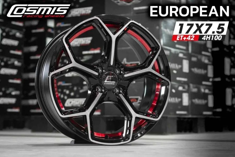 อัลบั้ม ล้อแม็กใหม่ Cosmis Europian 4รู100 ET42 ดำหน้าเงาอันเดอร์คัตแดง 7.5-17นิ้ว
