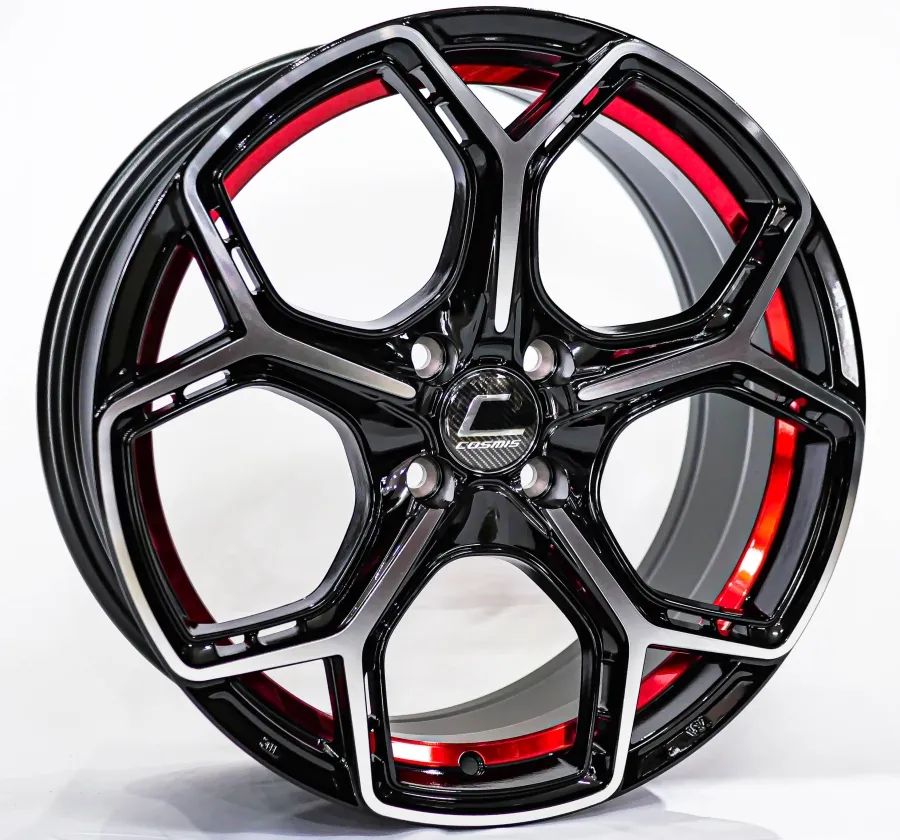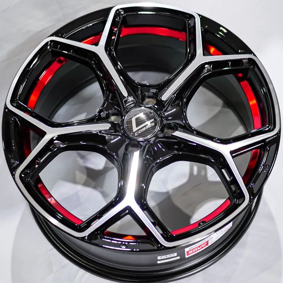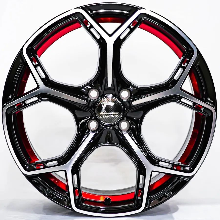 ล้อแม็กใหม่ Cosmis Europian 4รู100 ET42 ดำหน้าเงาอันเดอร์คัตแดง 7.5-17นิ้ว