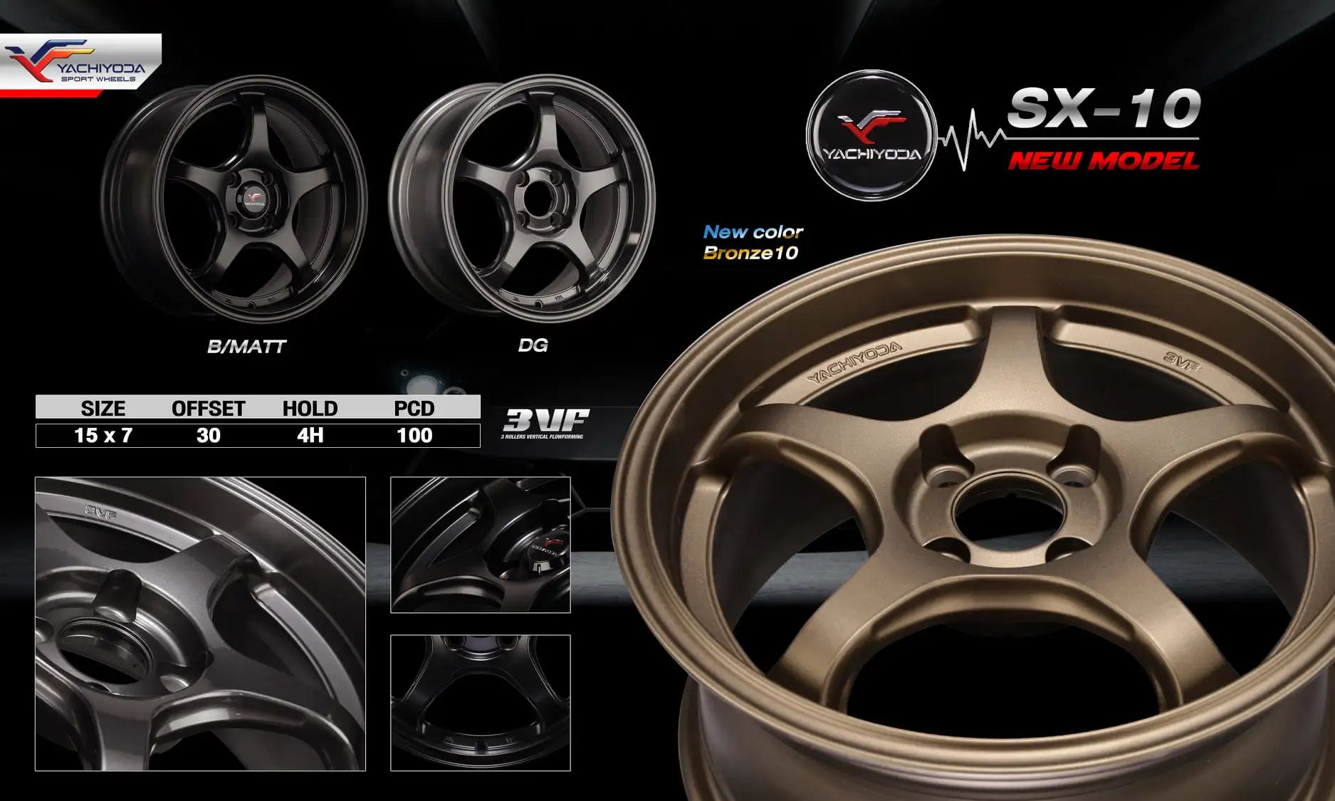 อัลบั้มล้อแม็กใหม่ FlowForming Yachiyoda SX10 4รู100 ET30 สีทองแดง 7-15นิ้ว