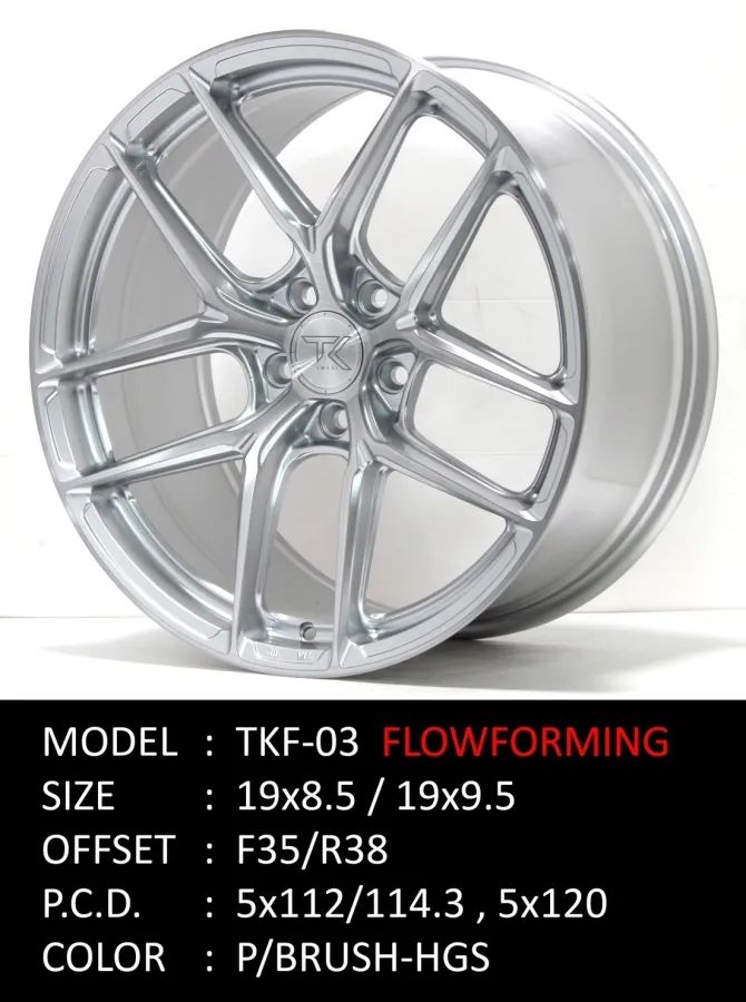 ล้อแม็กใหม่ FlowForming Tam TKF03 5รู112/114 ET35-38 ซิลเวอร์ปัดทราย F8.5 R9.5-19นิ้ว