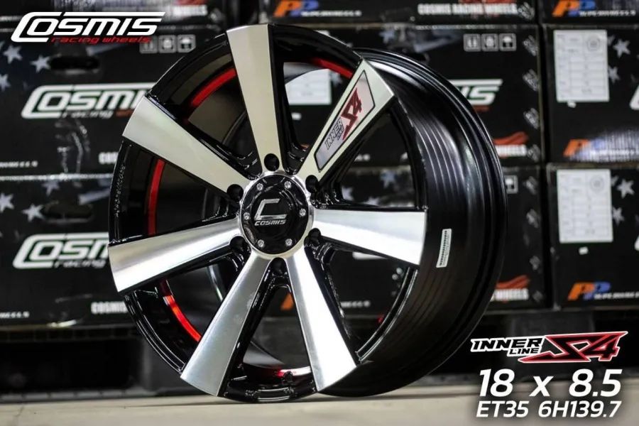 เฮียสั่งลด ล้อแม็กใหม่ Cosmis S4 6รู139 ET35 ดำหน้าเงาคัตแดง ใส่ H1 8.5-18นิ้ว