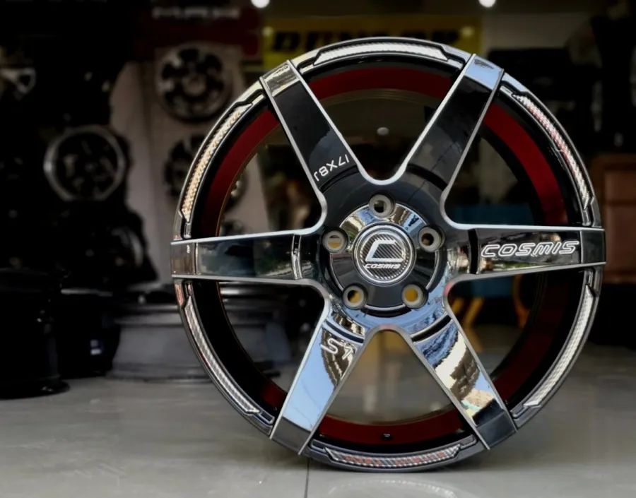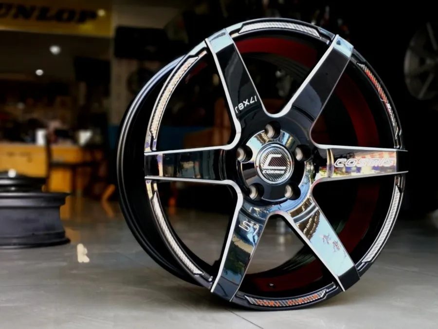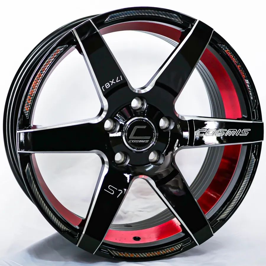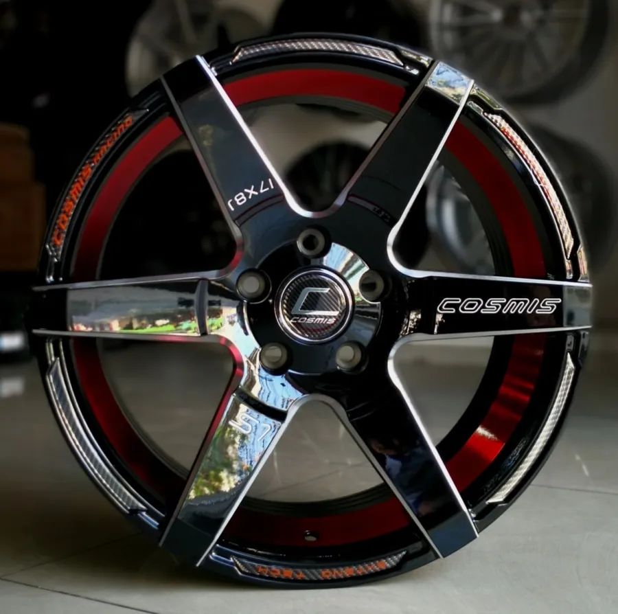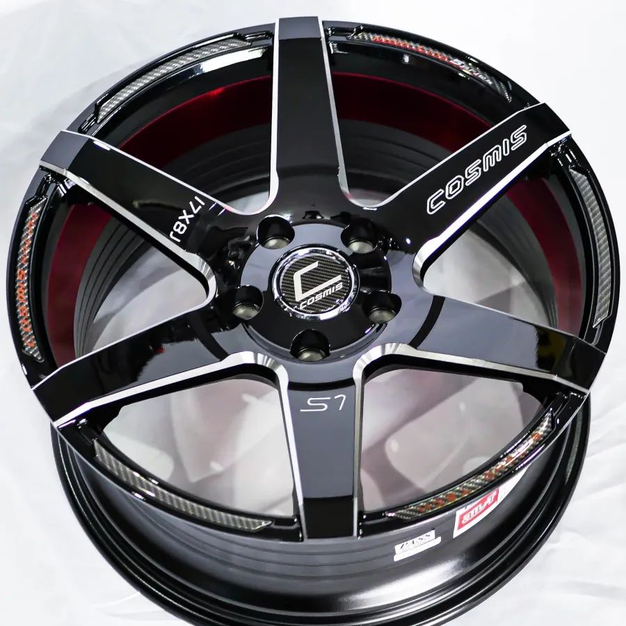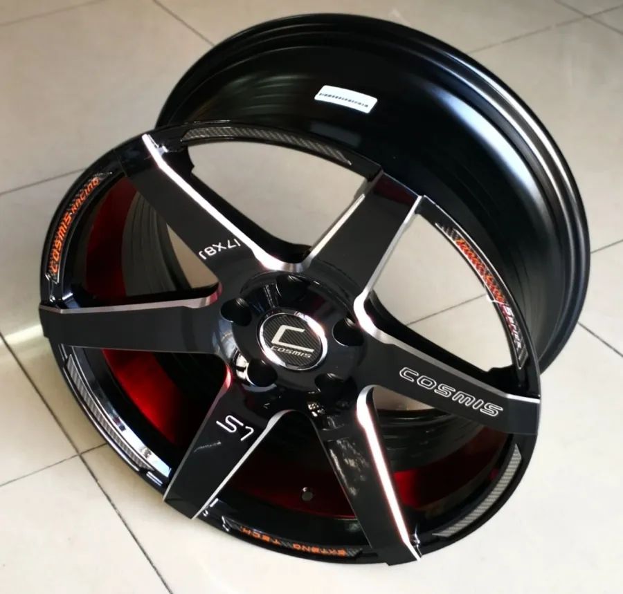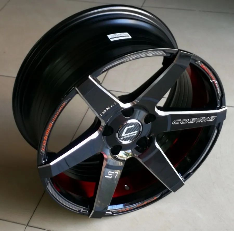 ล้อแม็กใหม่ Cosmis S1 5รู114 ET30 ดำมิลลิ่งท้องแดง 8-17นิ้ว