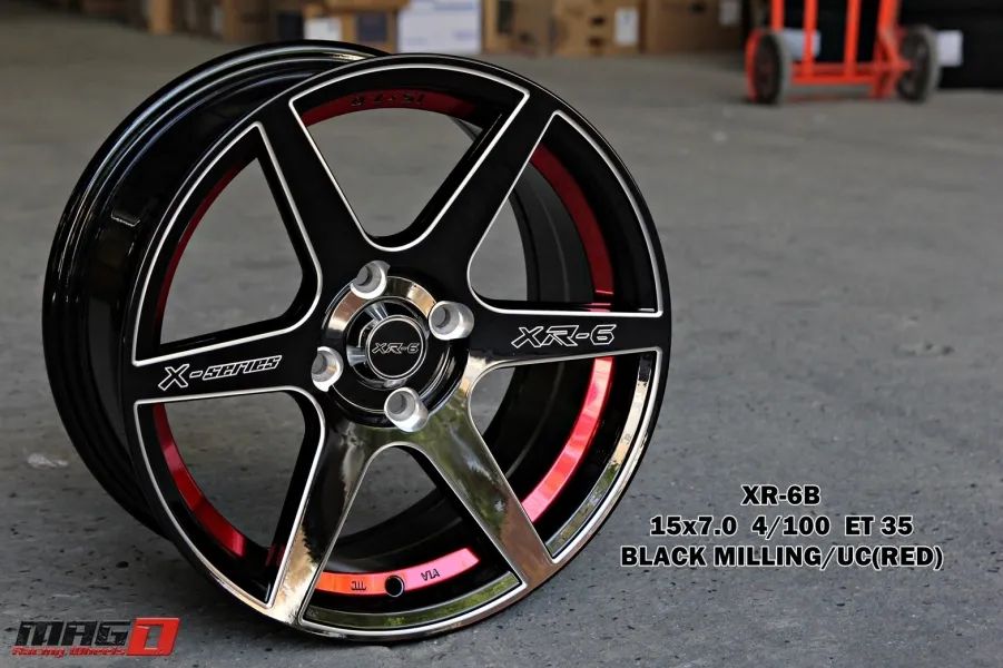 เฮียสั่งลด ล้อแม็กใหม่ Atomic XR6 4รู100 ET35 ดำเงามิลลิ่งคัตแดง 7-15นิ้ว