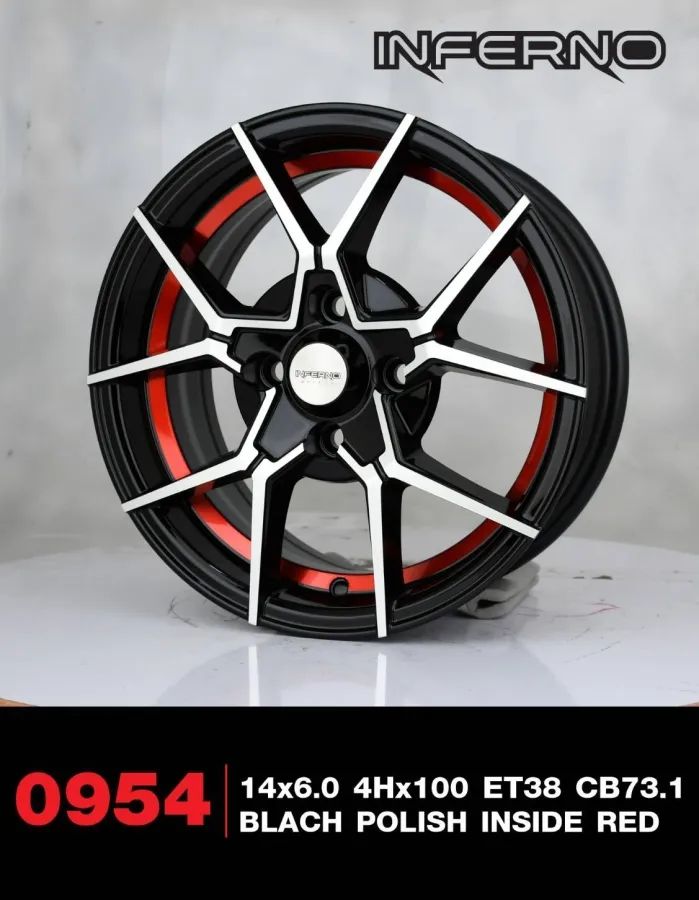 อัลบั้มล้อแม็กใหม่ Inferno 954 4รู100 ET38 ดำหน้าเงาคัตแดง 6-14นิ้ว