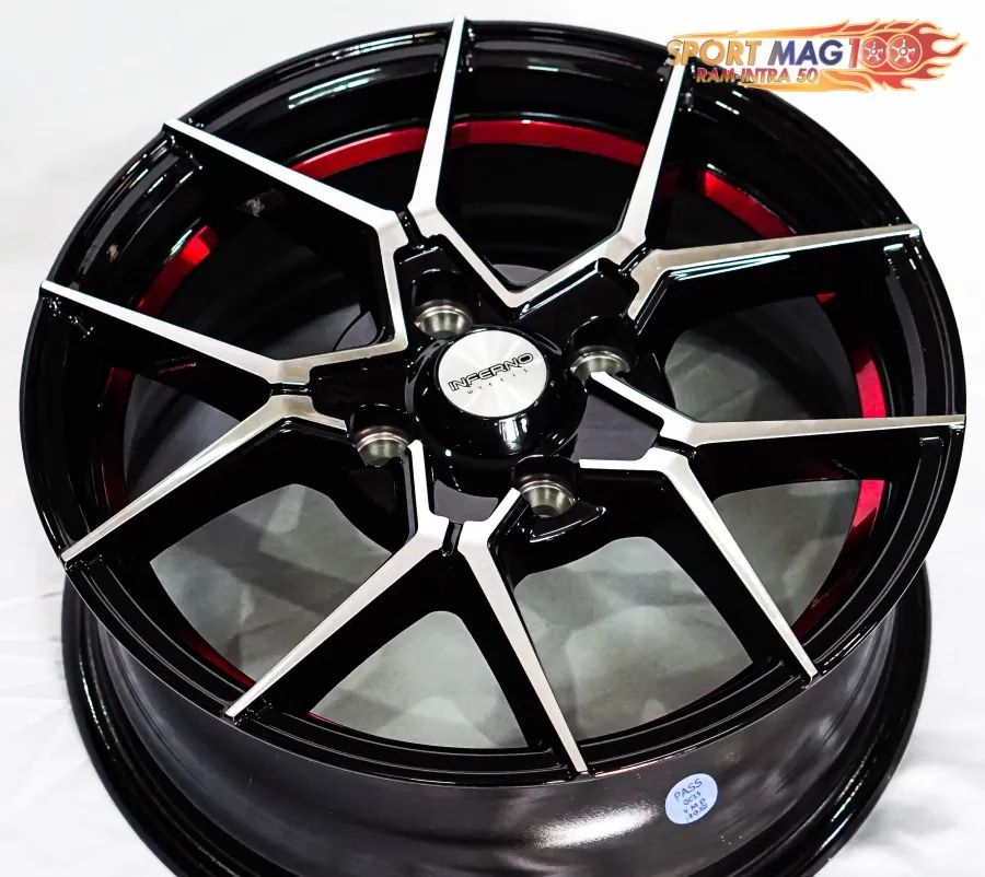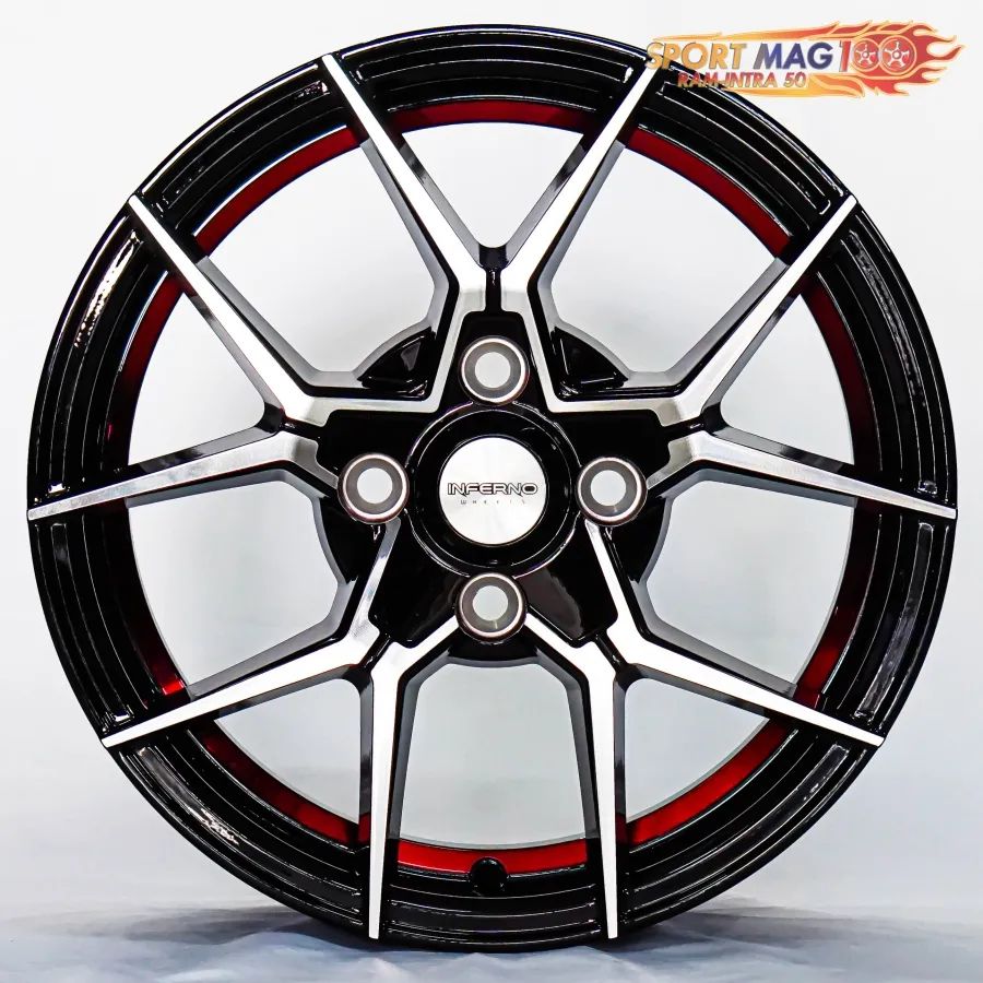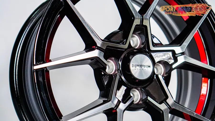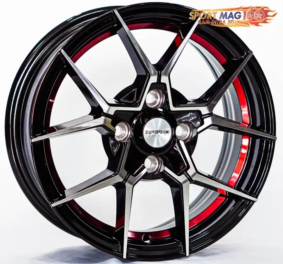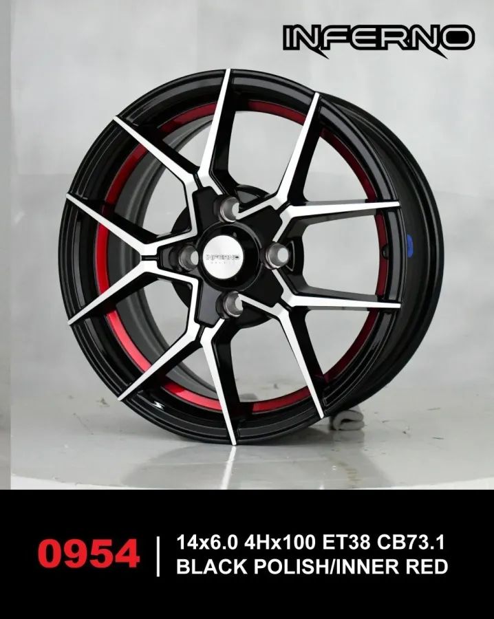 ล้อแม็กใหม่ Inferno 954 4รู100 ET38 ดำหน้าเงาคัตแดง 6-14นิ้ว