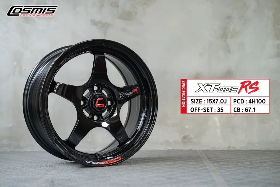 ล้อแม็กใหม่ Cosmis XT005RS 4รู100 ET35 ดำแวว 7-15นิ้ว
