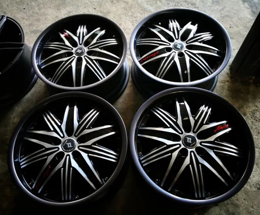 ล้อแม็กมือสอง Tam Amisted 5รู114 ET42 ดำหน้าปัดทรายขอบเทาหยอดแดง 8-18นิ้ว(รามอินทรา)