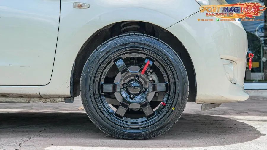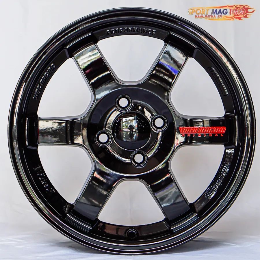 อัลบั้มล้อแม็ก TE37 ขอบ15นิ้ว 4รู100 ET35 สีดำแววหยอดแดง กว้าง 7นิ้ว