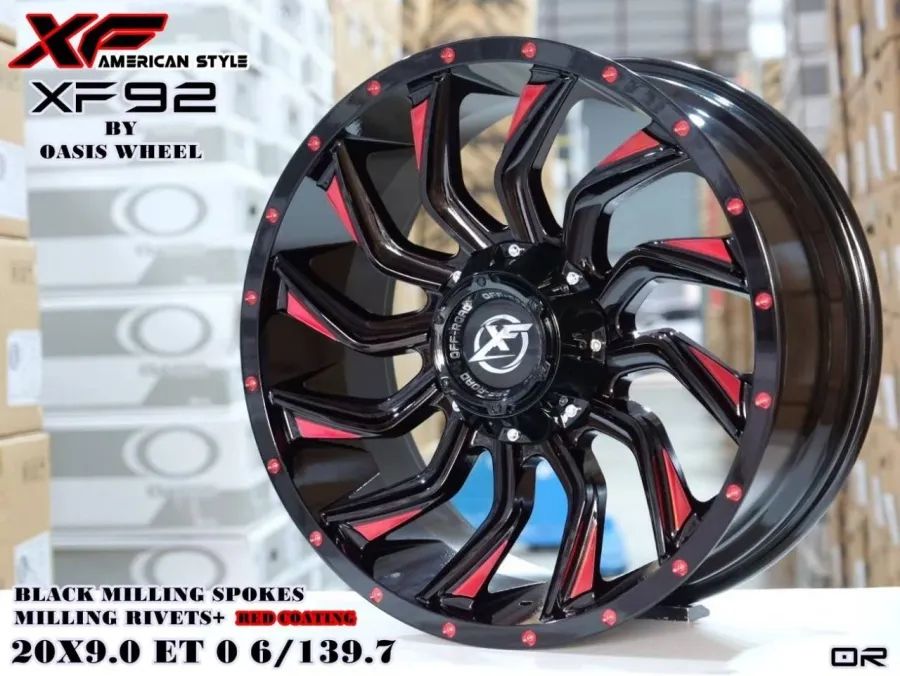 ล้อแม็กใหม่ Oasis XF92 6รู139 ET0 ดำมิลลิ่งแดง 9-20นิ้ว
