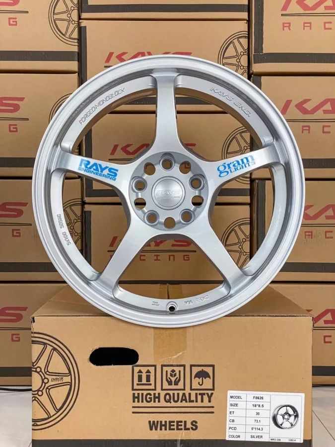 ล้อแม็กใหม่เรซ Gramlight 5รู114 ET30 ซิลเวอร์เครียร์ 8.5-18นิ้ว