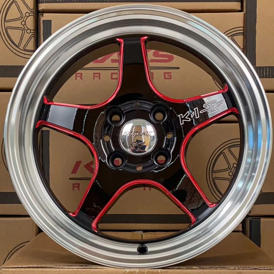 ล้อแม็กใหม่ K1SF 4รู100 ET35 ดำมิลลิ่งแดง 7-15นิ้ว
