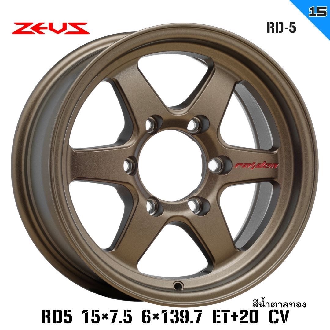 ล้อแม็กใหม่ Raiden Rd5 6รู139 ET20 ทองแดง 7.5-15นิ้ว