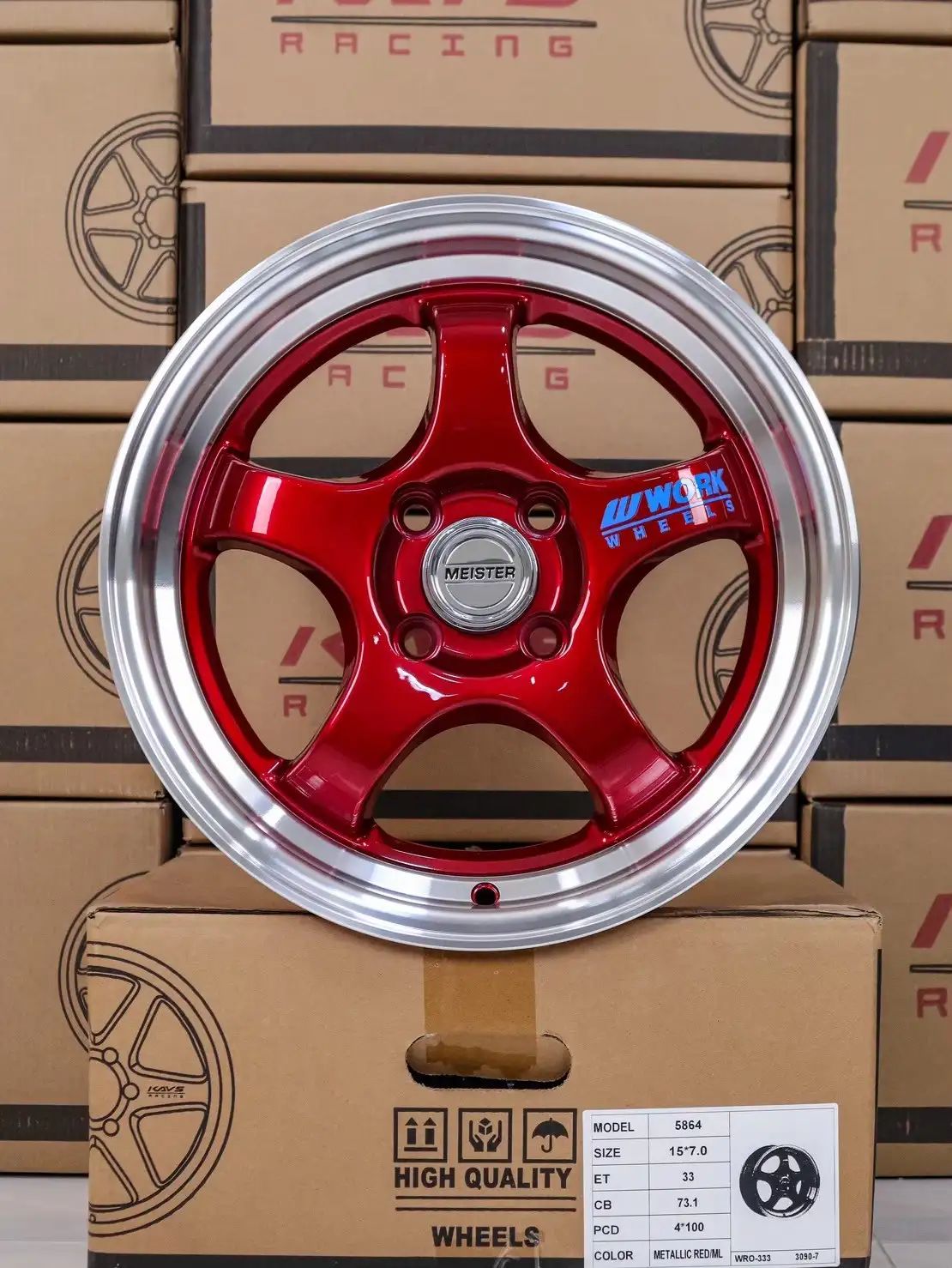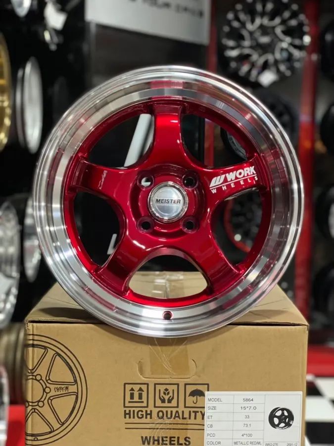 อัลบั้มล้อแม็กใหม่ S1 4รู100 ET33 แดงแก้วขอบเงา 7-15นิ้ว