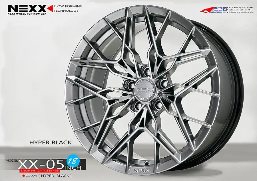 อัลบั้มล้อแม็กใหม่เบา FlowForming NEXX XX05 5รู112/114 ET35 ไฮเปอร์แบล็ค 8.5-18นิ้ว