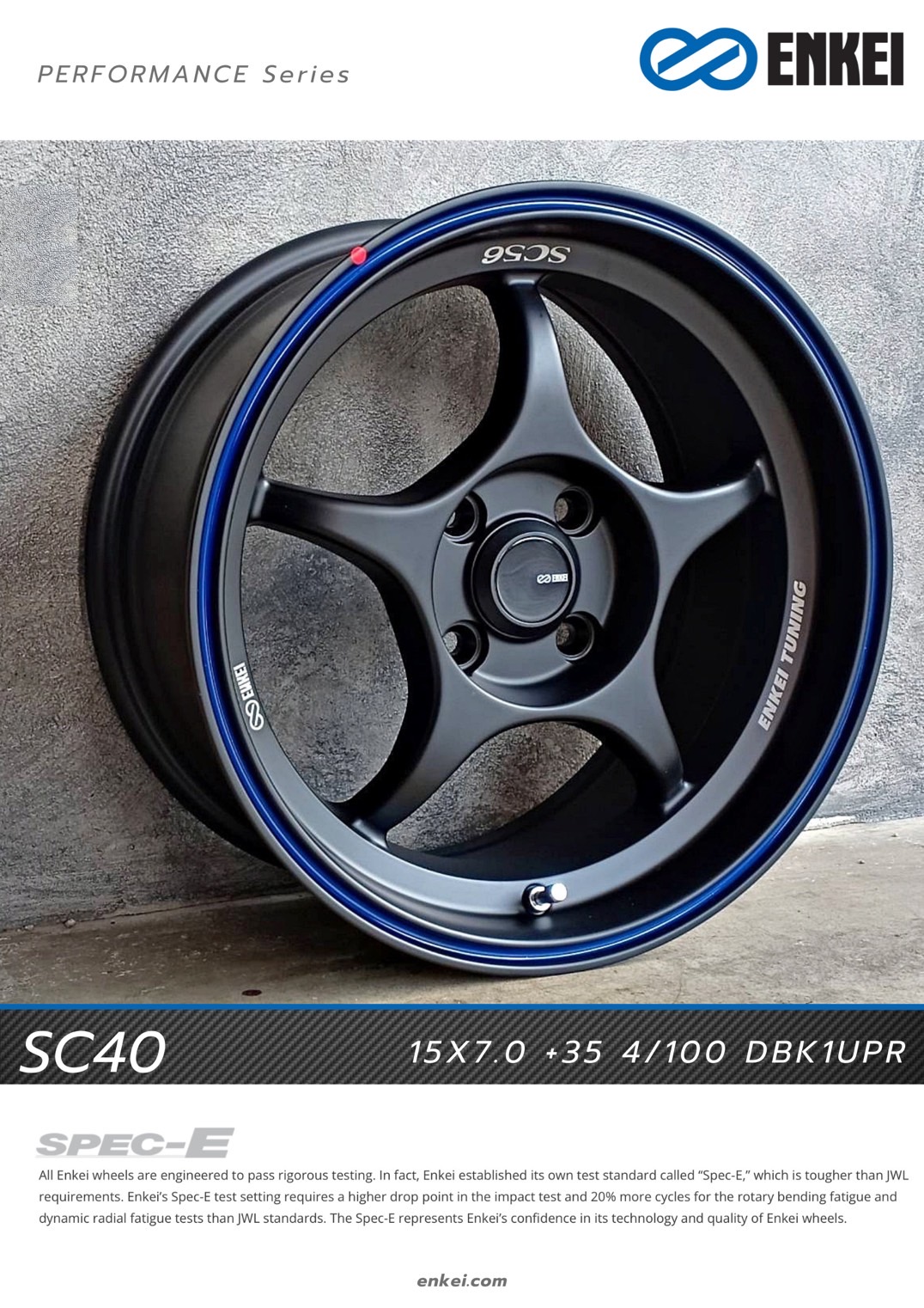 อัลบั้มล้อแม็กซ์ Enkei SC56 4รู100 ET28 ดำเส้นน้ำเงิน 7-15นิ้ว