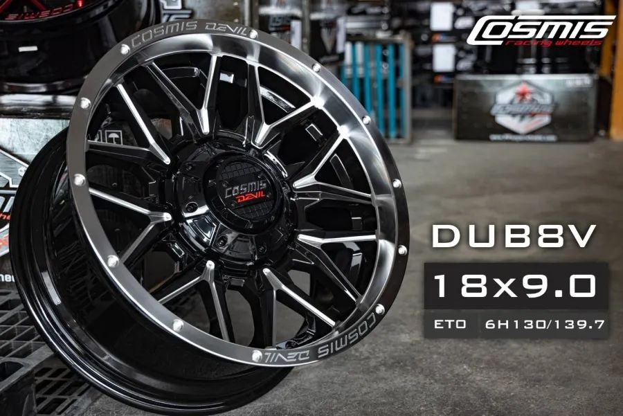 อัลบั้มล้อแม็กใหม่ Cosmis DUB-8V 6รู130/139 ET0 ดำขอบเงามิลลิ่งก้าน 9-18นิ้ว