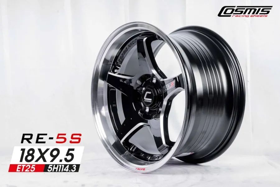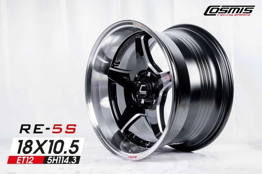 ล้อแม็กใหม่ COSMIS RE-5S 5รู114 ดำขอบเงามิลลิ่งก้าน F9.5 R10.5-18นิ้ว