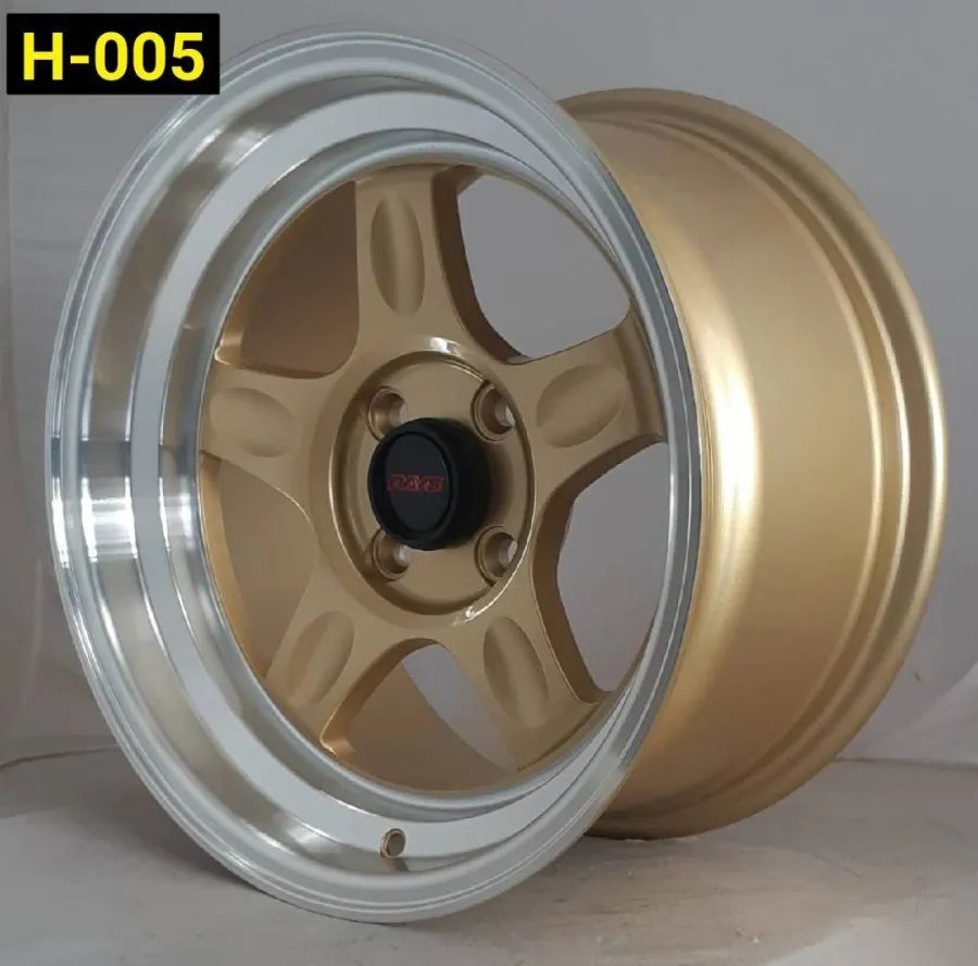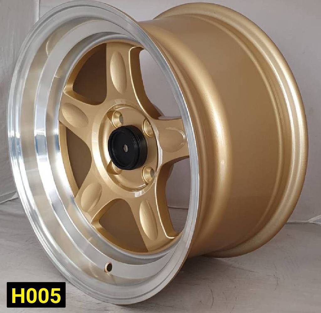 อัลบั้มล้อแม็กใหม่เรโทร H005 4รู100 ET10 ทองขอบเงา 8-15นิ้ว