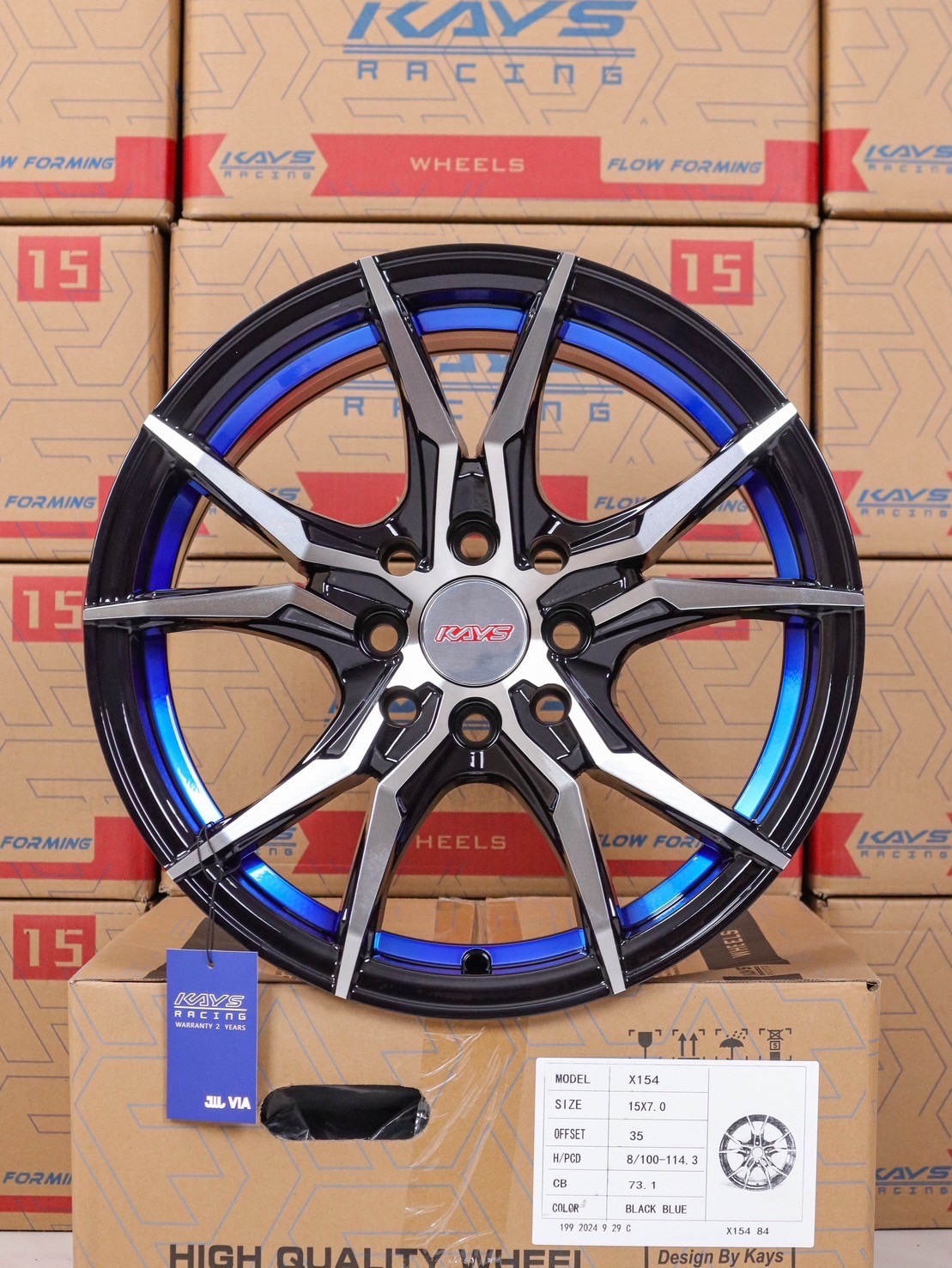 ล้อแม็กใหม่ RAV X154 4รู100/114 ET35 ดำหน้าเงาคัตน้ำเงิน 7-15นิ้ว
