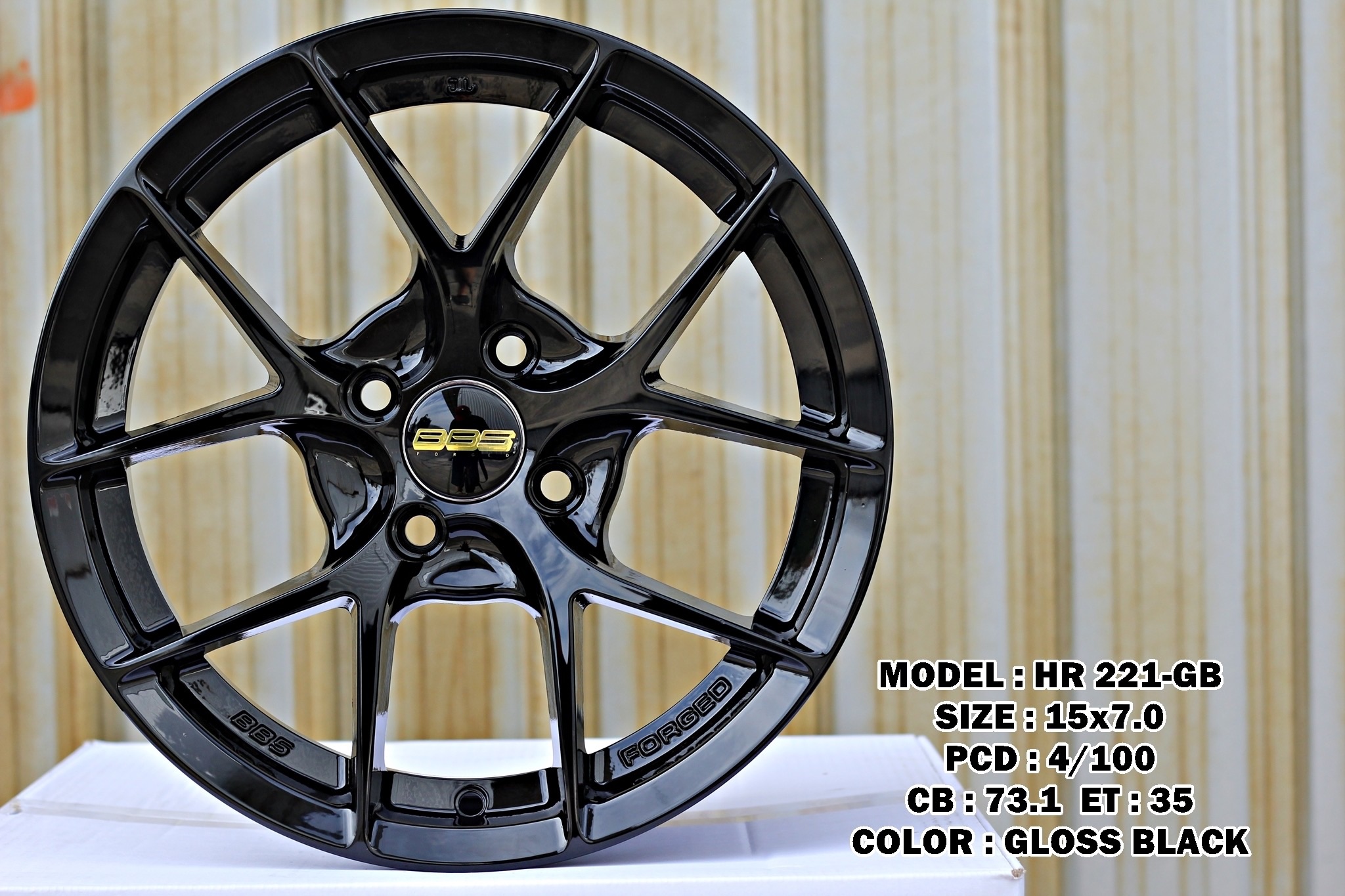อัลบั้มล้อแม็กFlowForming FIR ขอบ15นิ้ว 4รู100 ET35 ดำแวว กว้าง7นิ้ว
