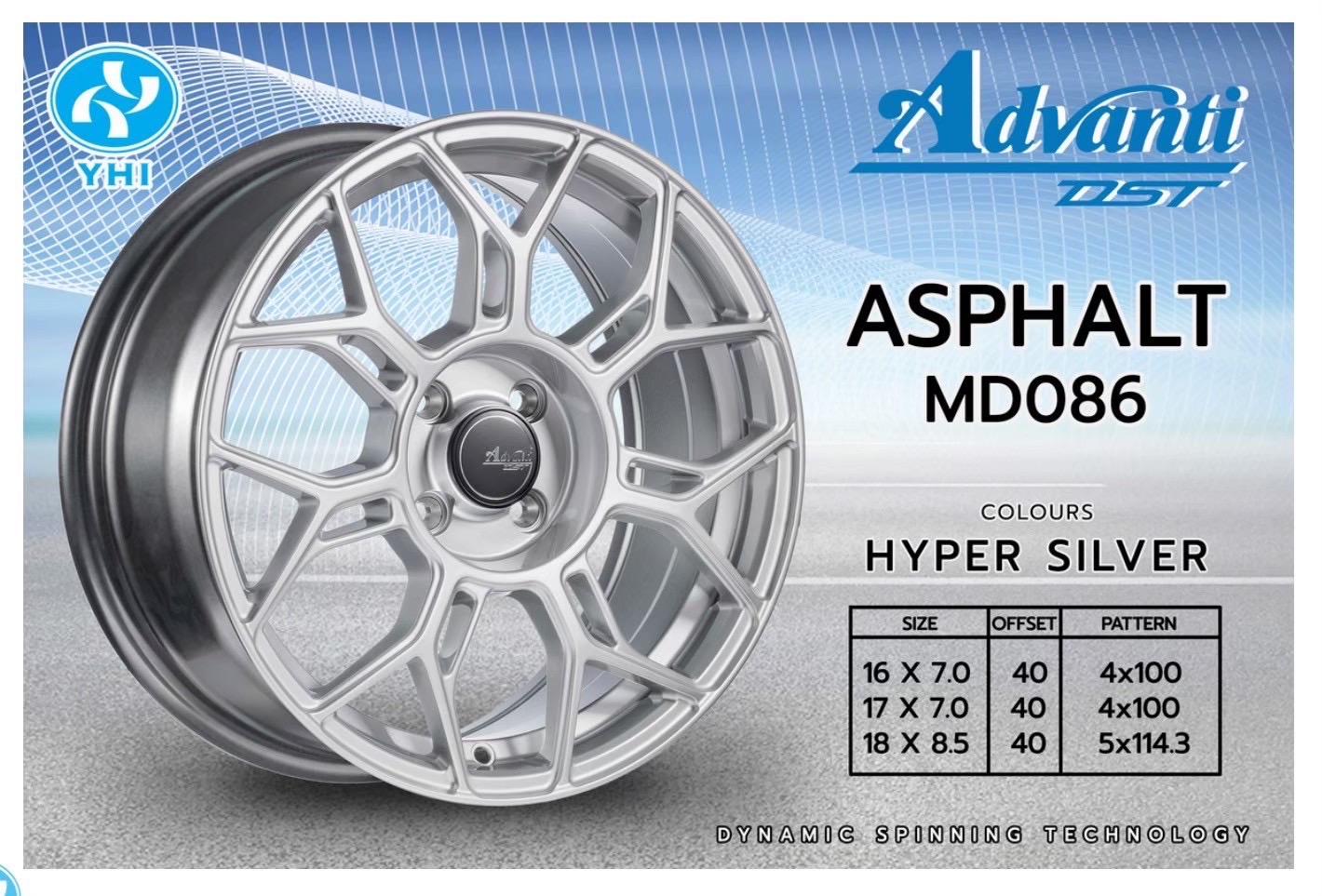 ล้อแม็กใหม่แท้เบา FlowForming Advanti MD086 4รู100 Offset40 สีไฮเปอร์ซิลเวอร์ กว้าง7 ขอบ16
