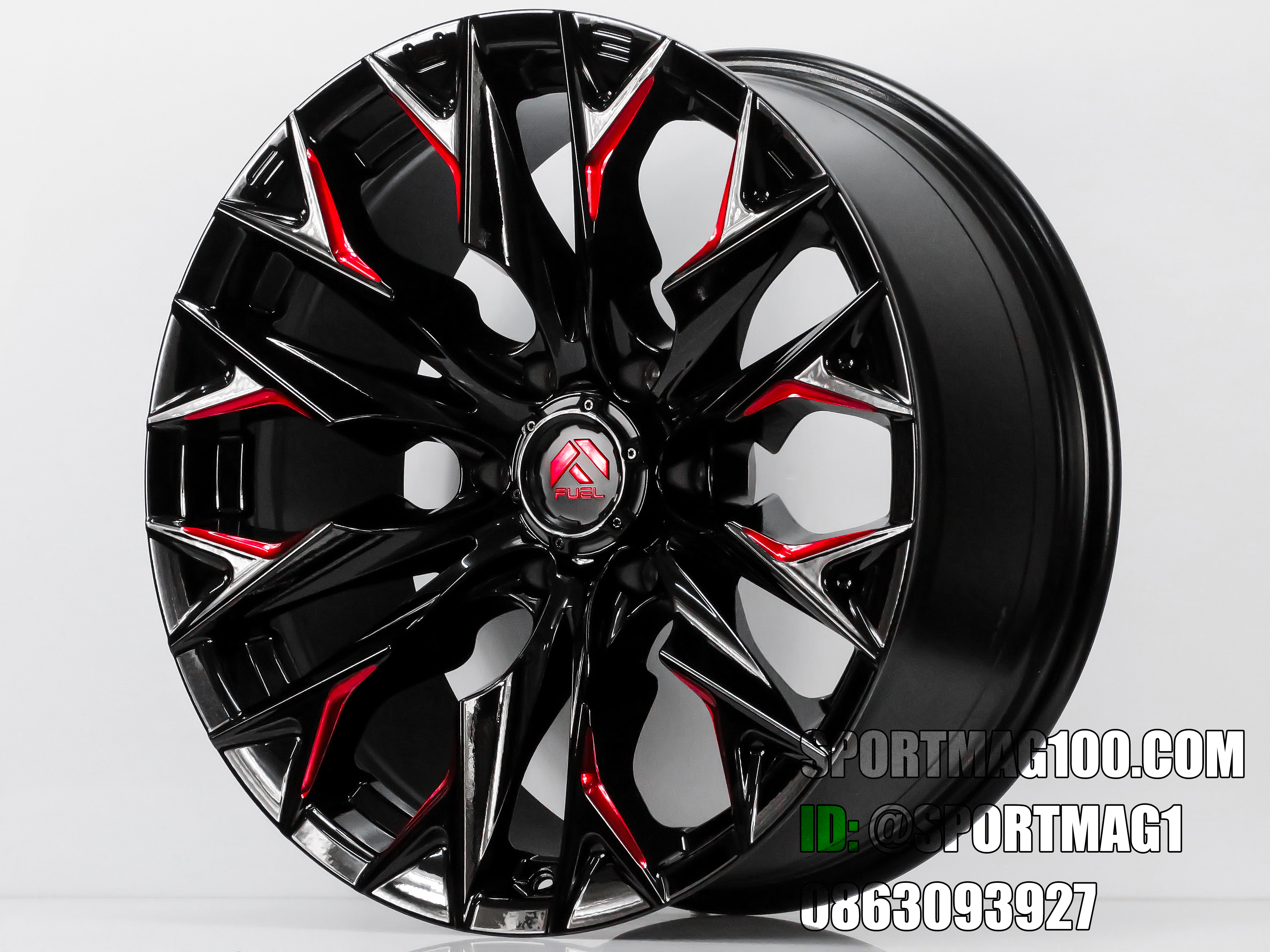 ล้อแม็กแท้ #FUEL #FLAME สีดำเงามิลลิ่งแดง(Glossyblack/Milled/Red)