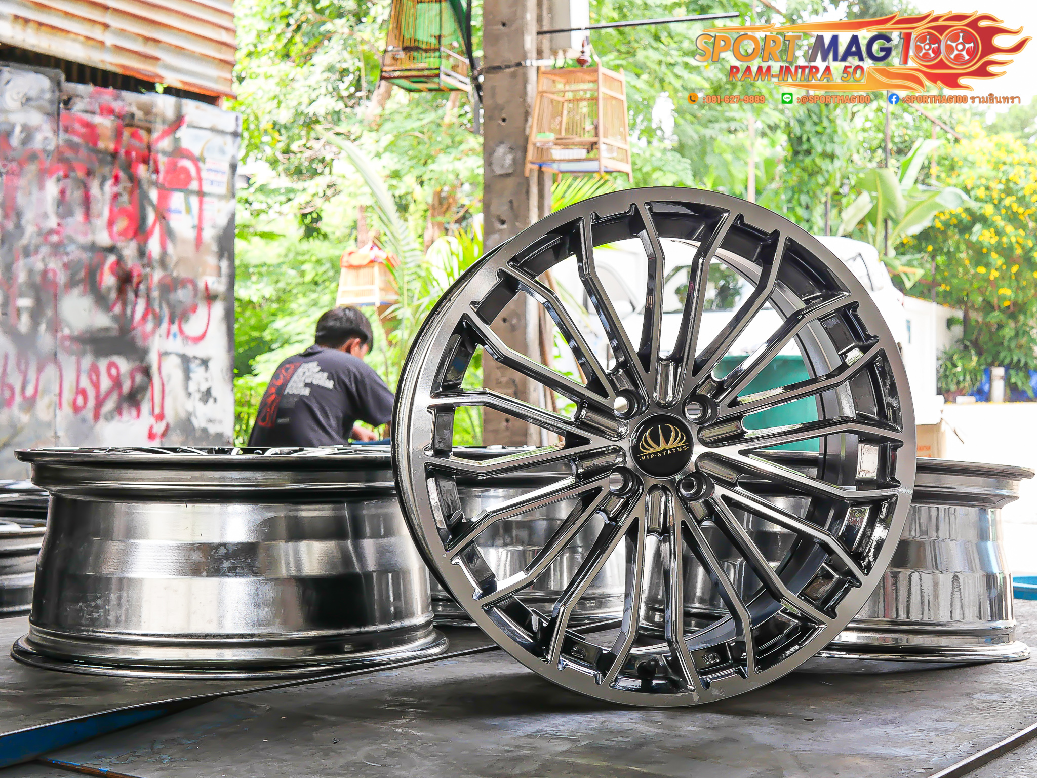 ล้อแม็กมือสอง VIP Status ขอบ17นิ้ว กว้าง7.5นิ้ว 4รู100 สีแบล็คโคมหน้าเงา (รามอินทรา)