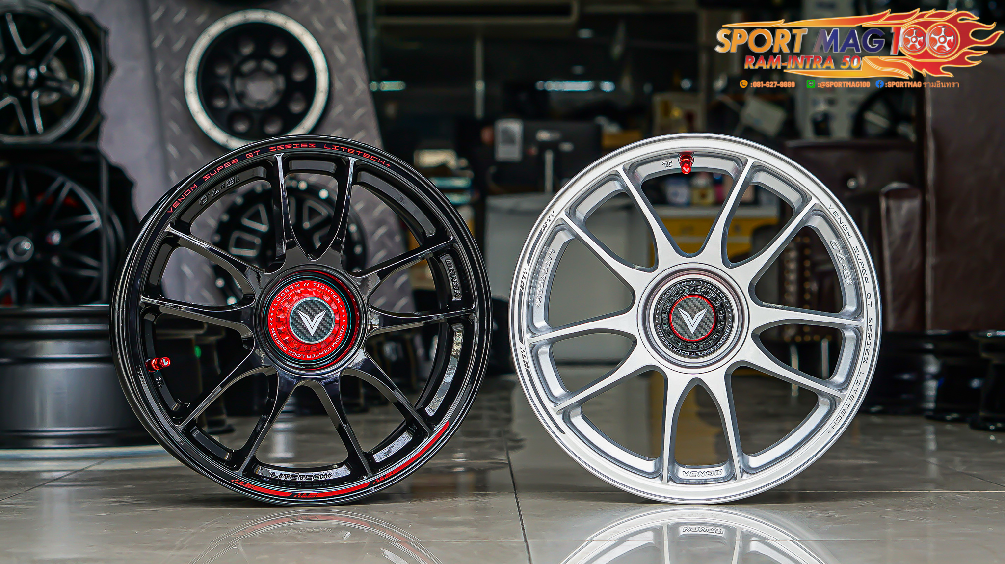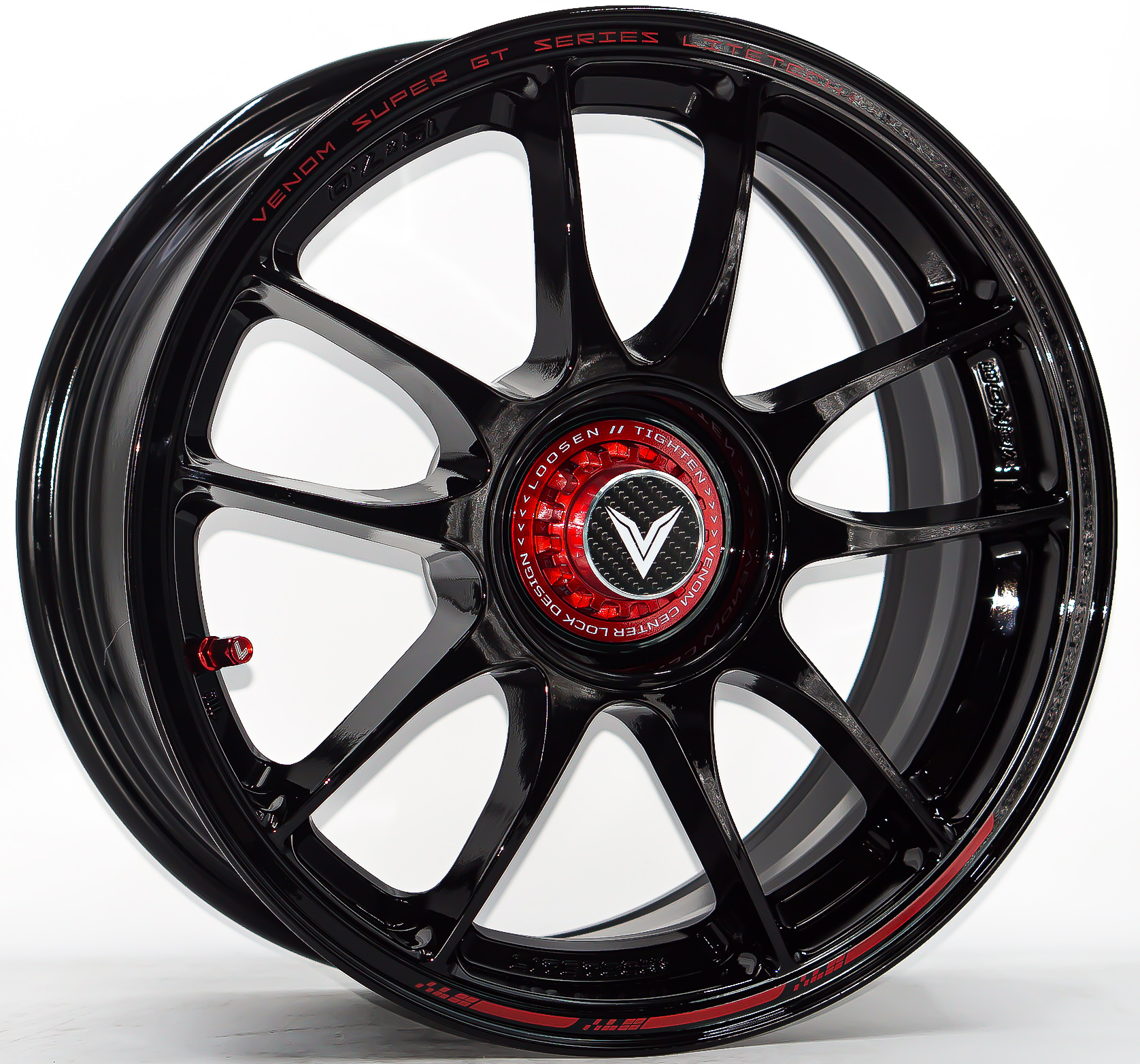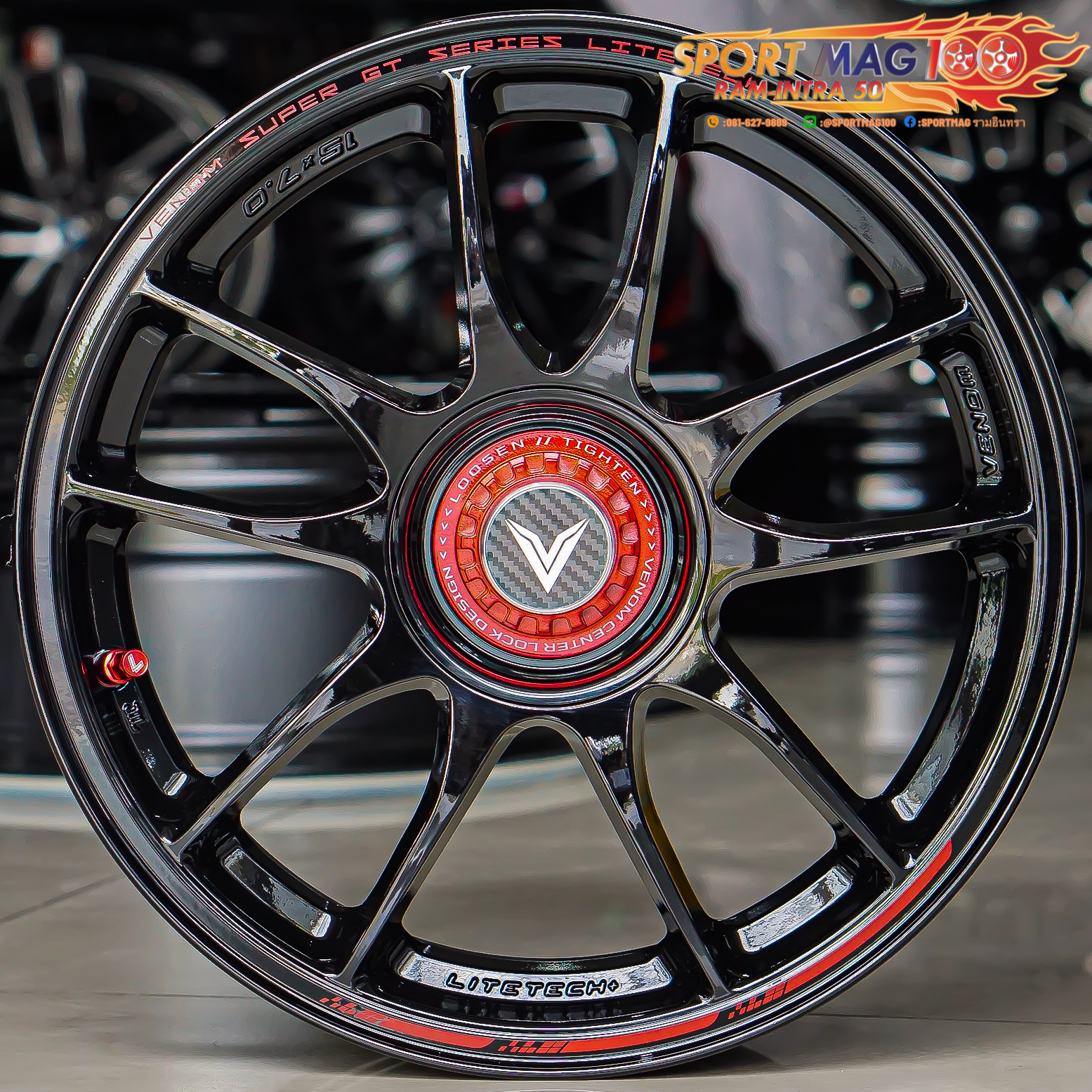 ล้อแม็ก #Lenso #Super GT #VNK #Venom #Litetech+ #FlowForming สีดำเงา(Black/PadRed)