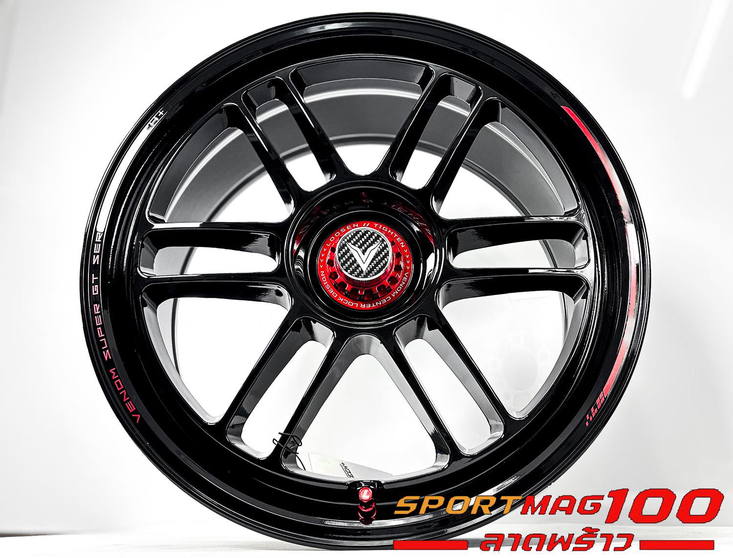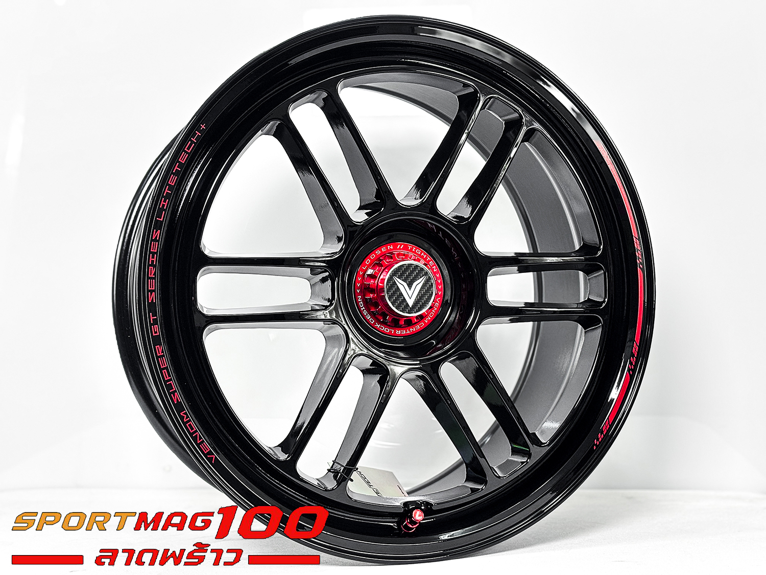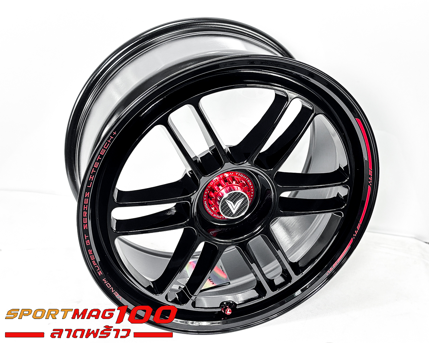 ล้อแม็ก #Lenso #Super GT #VNR #Venom #Litetech+ #FlowForming สีดำเงา(Black/PadRed)