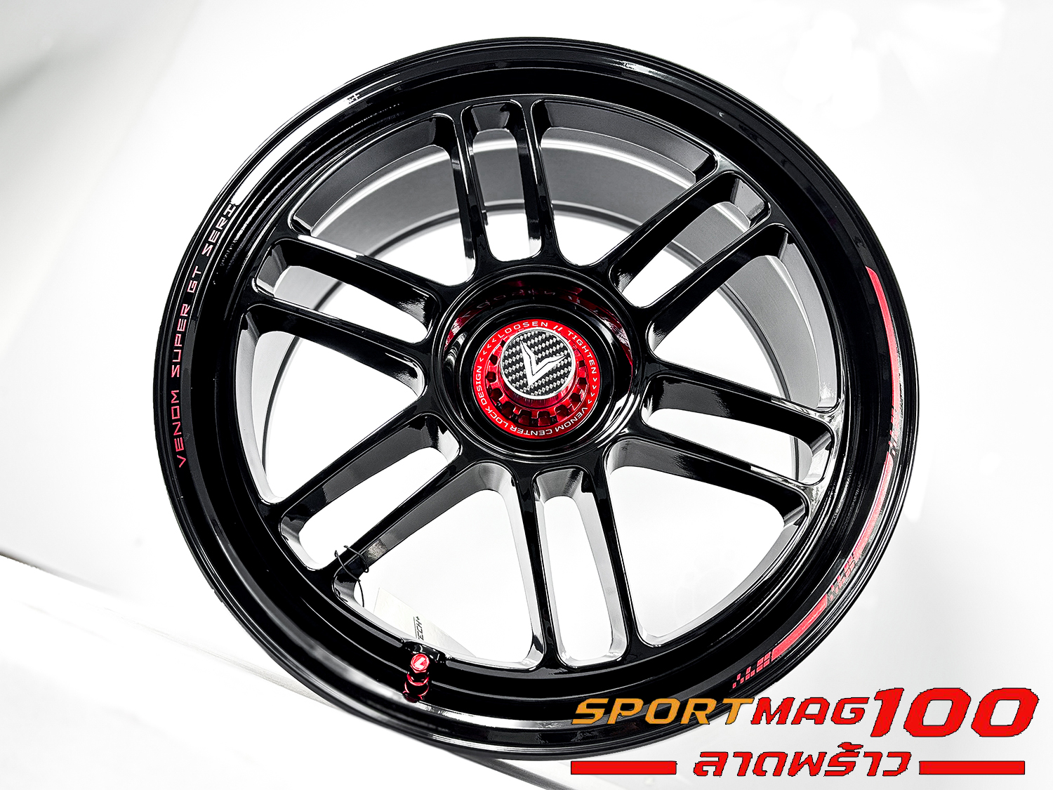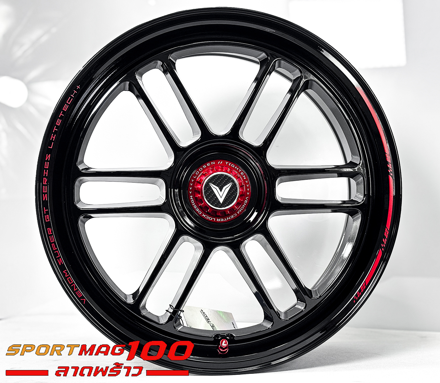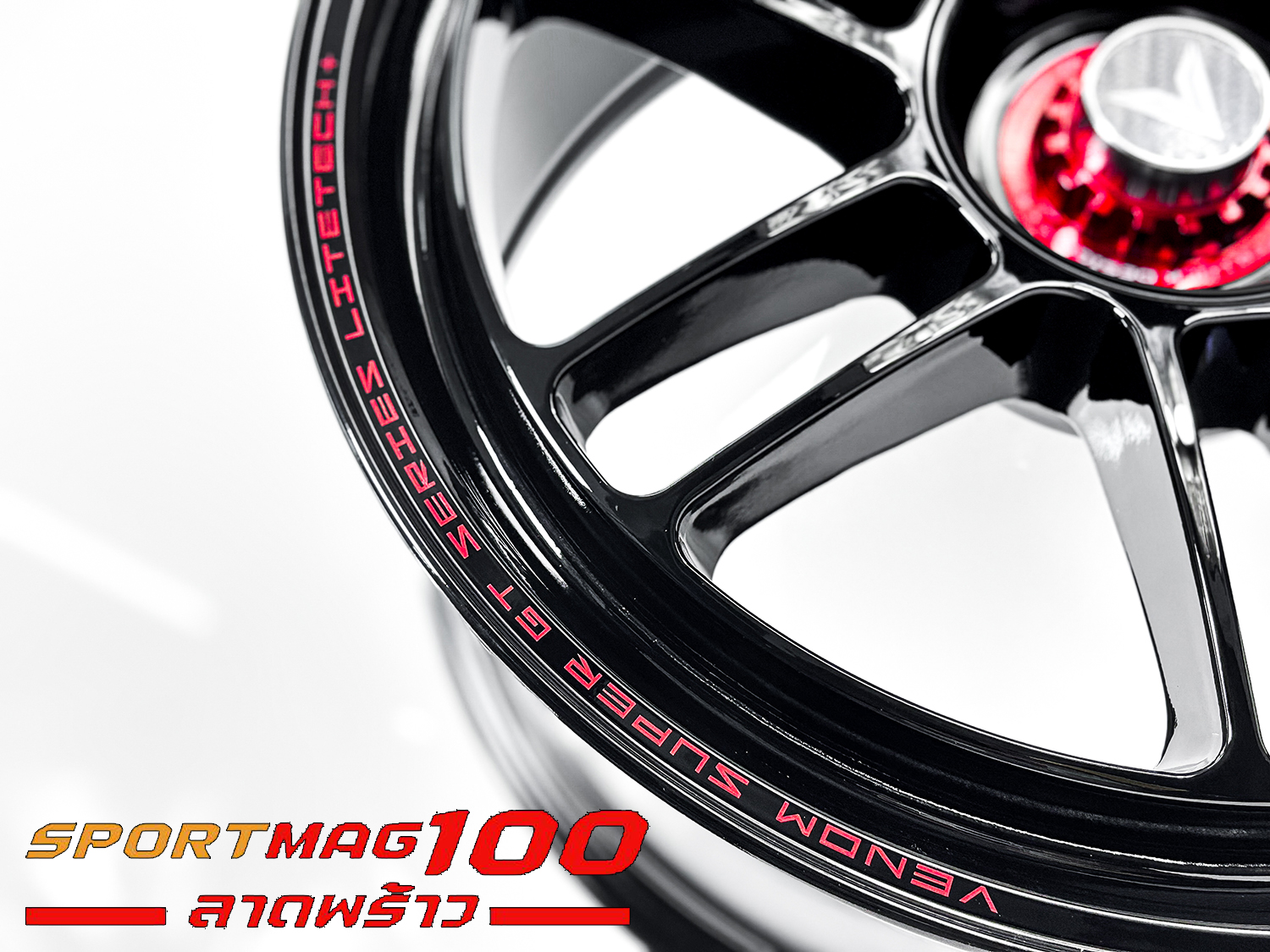 ล้อแม็ก #Lenso #Super GT #VNR #Venom #Litetech+ #FlowForming สีดำเงา(Black/PadRed)