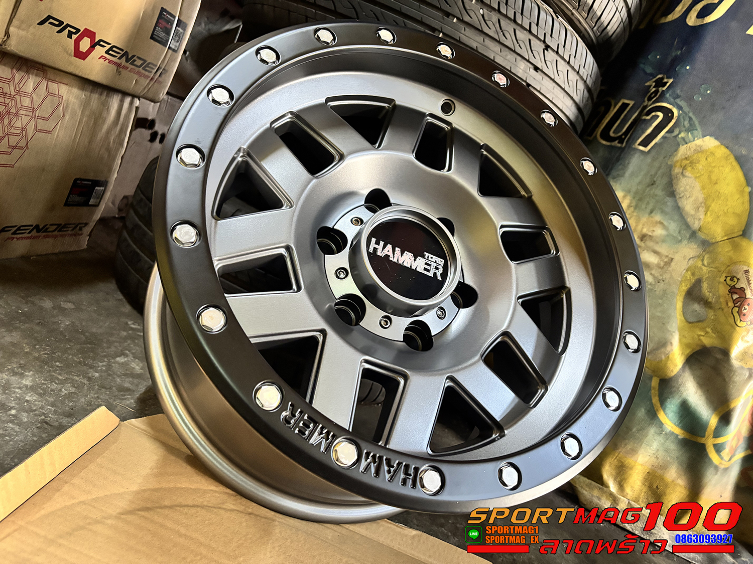ล้อแม็ก HAMMER HM2 ขอบ16นิ้ว กว้าง8.5นิ้ว 6รู139.7 Offset0 สีเทาขอบดำ
