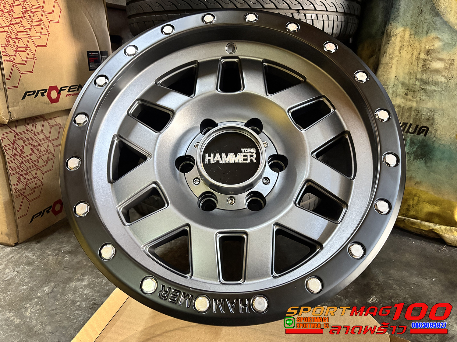 อัลบั้มล้อแม็ก HAMMER HM2 ขอบ16นิ้ว กว้าง8.5นิ้ว 6รู139.7 Offset0 สีเทาขอบดำ